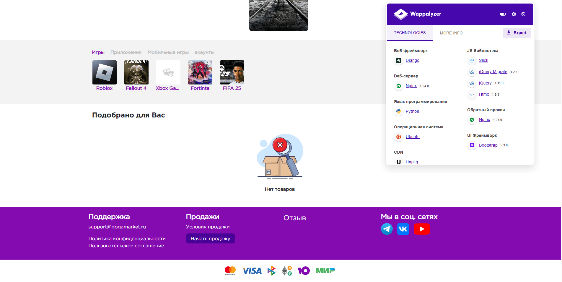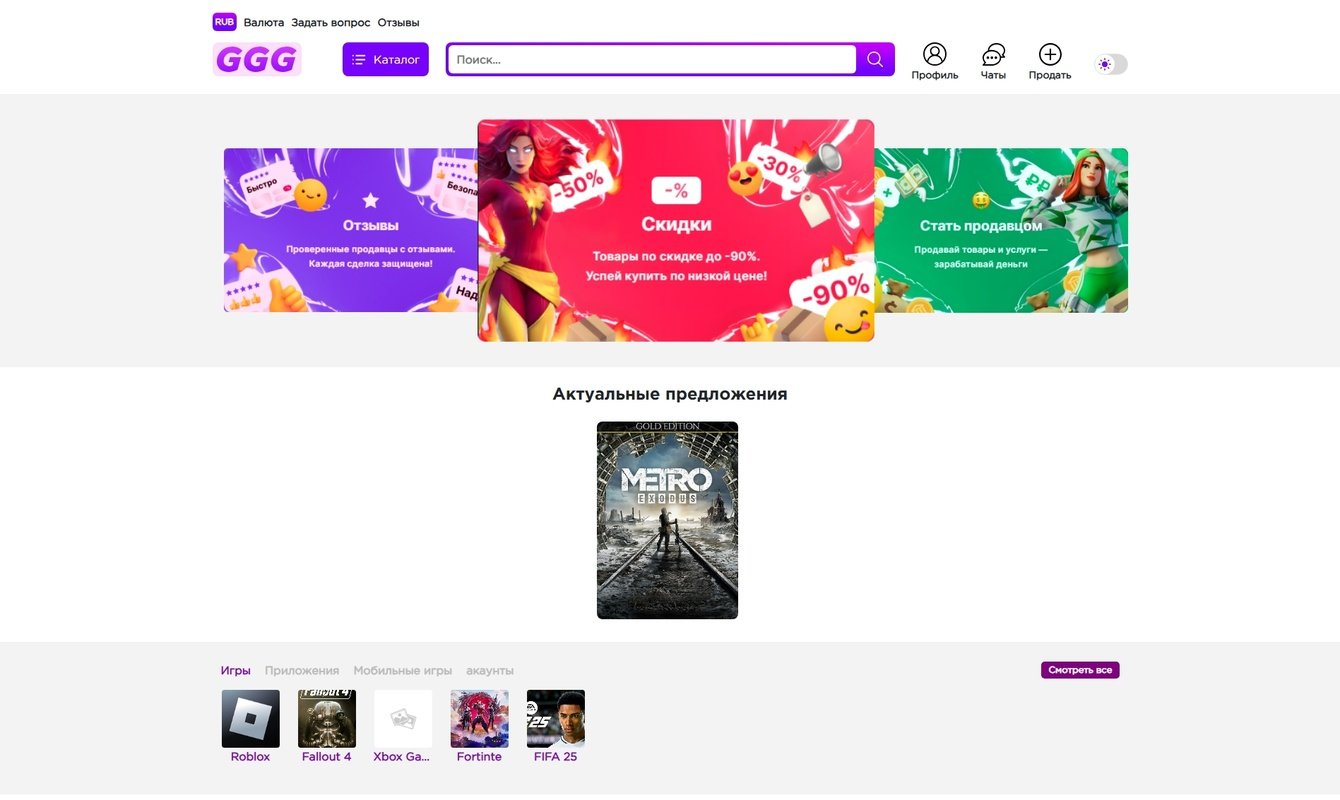 Наш клиент — онлайн-платформа GoGaMarket, специализирующаяся на продаже видеоигр и цифровых ключей для разных платформ. Компания обратилась к нам с задачей создать полноценный маркетплейс, который будет удобен как для геймеров, так и для администраторов проекта. Важно было выстроить понятную структуру каталога, упростить процесс выбора и покупки игр, обеспечить высокий уровень доверия со стороны пользователей и заложить основу для масштабирования сервиса. Отдельный акцент делался на скорости работы, стабильности системы и интуитивном пользовательском опыте.