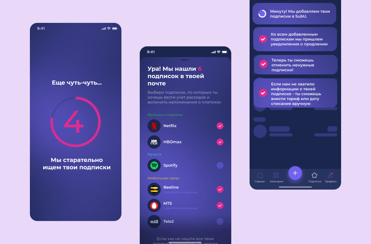 - Создали маркетплейс для поиска, добавления и отслеживания подписок;