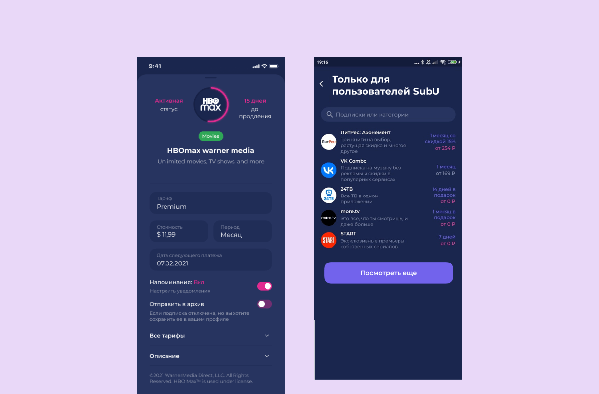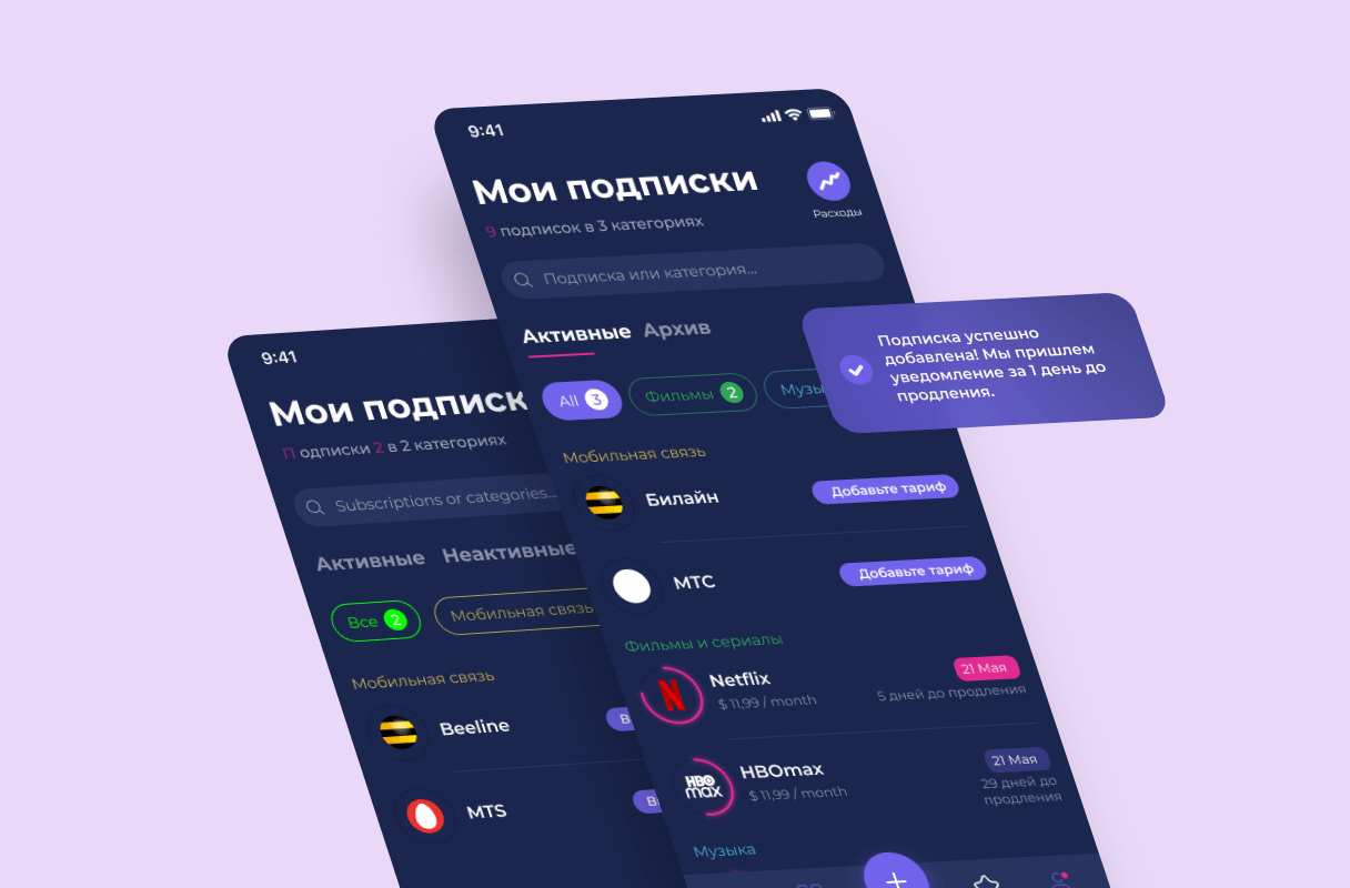 Маркетплейс, позволяющий управлять всеми подписками в одном приложении. Добавлять выгодные сервисы и комбо-предложения, делиться подпиской с близкими, получать уведомления о продлении и планировать свои затраты!
