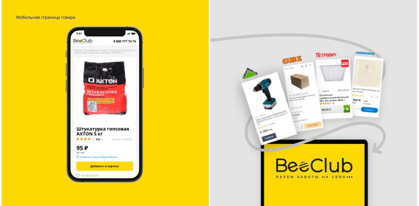 Идея собрать все товары из Леруа, OBI, Петрович, Castorama в едином каталоге. Тогда клиент сможет заказать стройматериалы из разных магазинов в одном месте - в сервисе Beeclub.