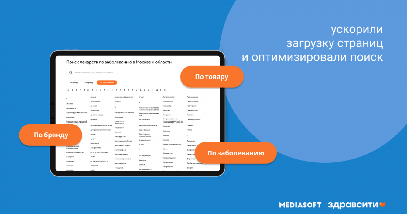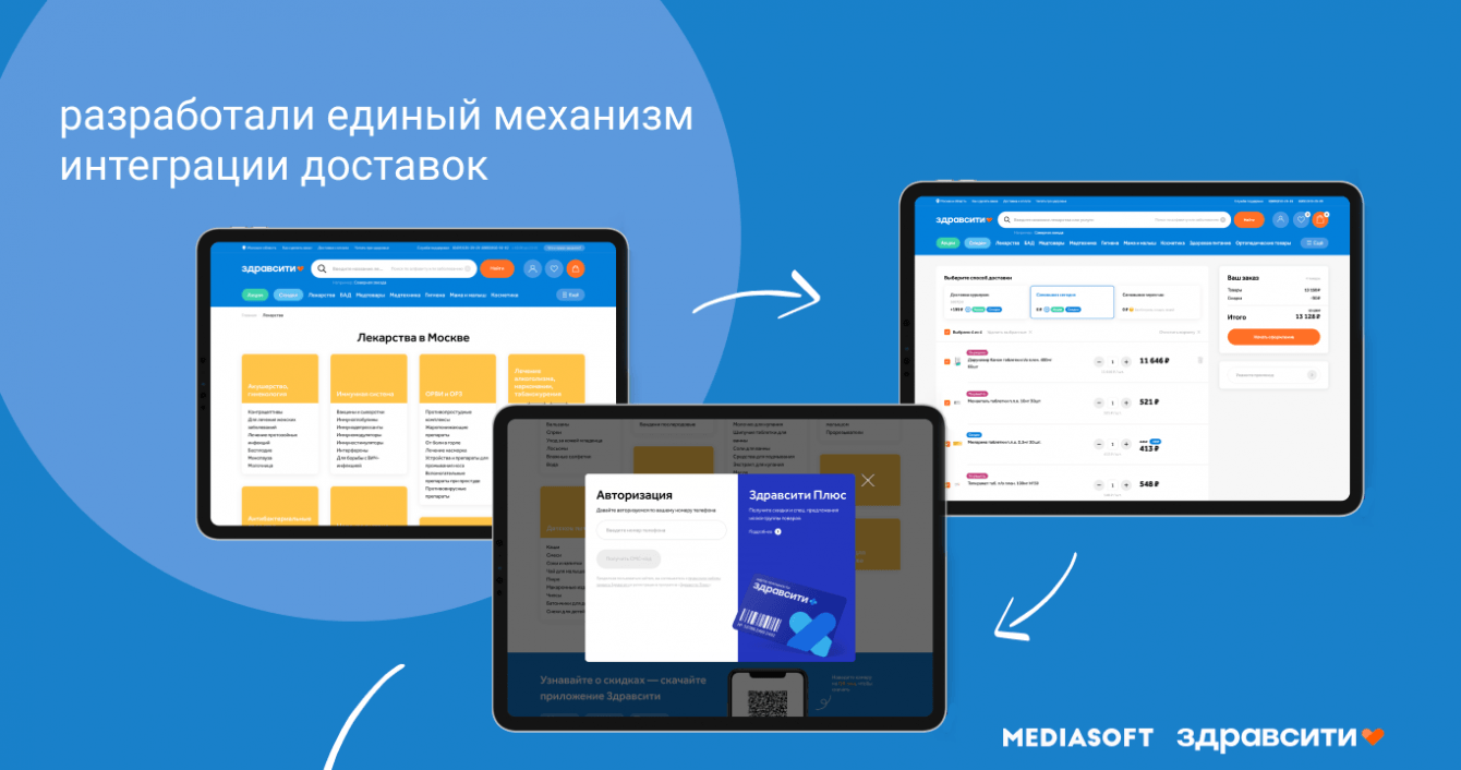 В рамках совместной работы команда MediaSoft работала над улучшением маркетплейса, с помощью которых помогла «Здравсити» достичь бизнес-целей. Мы подключили к уже существующему сайту новые аптечные сети и дополнительные сервисы доставок, интегрировали сторонние маркетплейсы, разработали новую версию корзины, с технической стороны подготовили сервис к кратному росту аудитории.