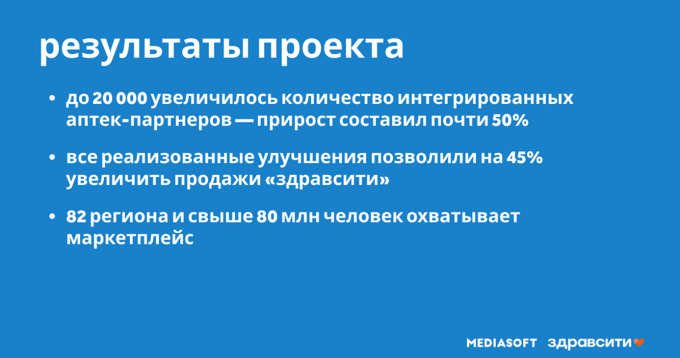 Все реализованные улучшения позволили на 45% увеличить продажи «Здравсити» за 2021 год.