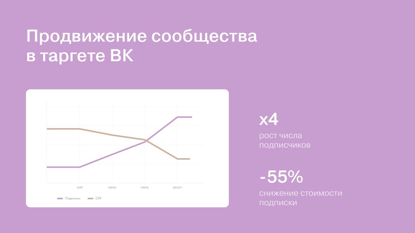 Старгетировались на аудитории конкурентов в Telegram и получили подписки по минимальной стоимости. Сформулировали гипотезу, что таких же результатов получится добиться в ВК, но здесь аудитории конкурентов наоборот показали себя дороже.