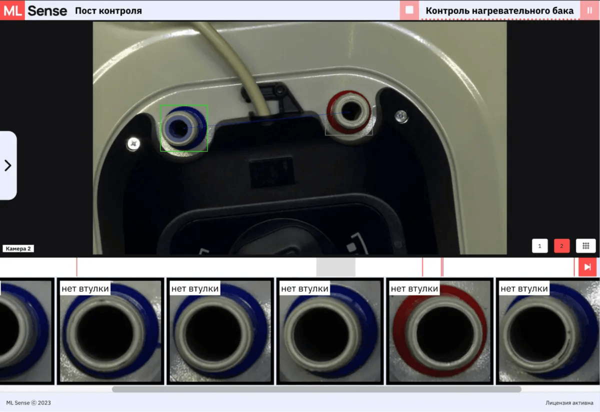 Мы сделали тестовое видео на производстве, чтобы определить точки контроля, где будем устанавливать оборудование. Важно было оценить факторы, которые влияют на работу системы ML Sense — уровень освещения, наличие вибраций, радиальное смещение водонагревателей на конвейере, разницу по высоте между водонагревателями и предполагаемой камерой.