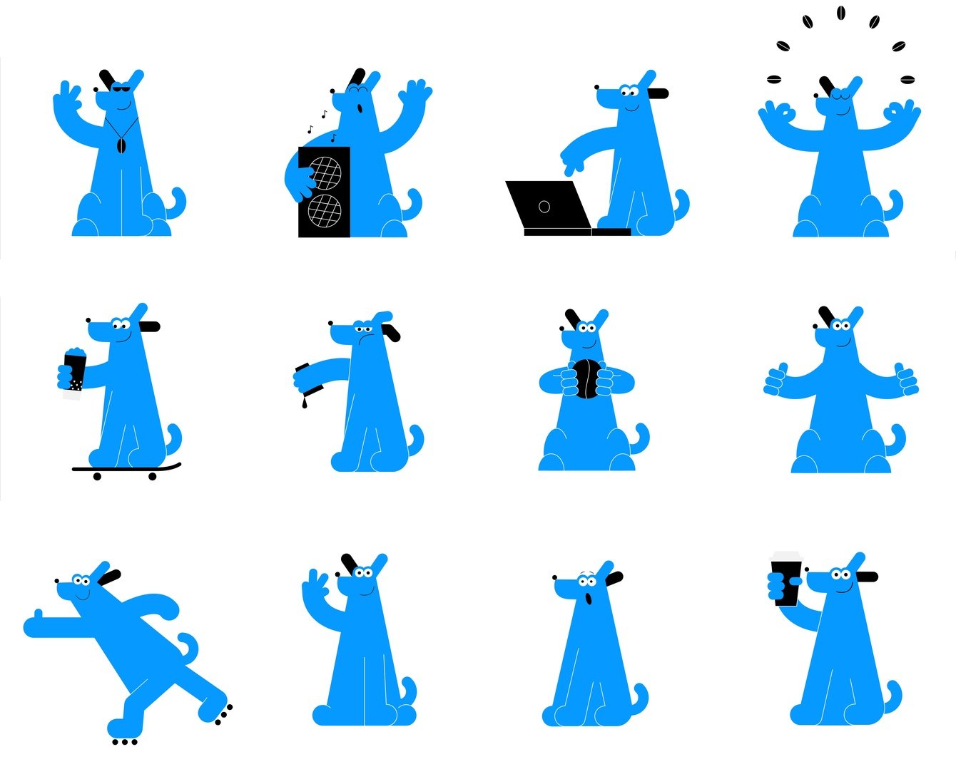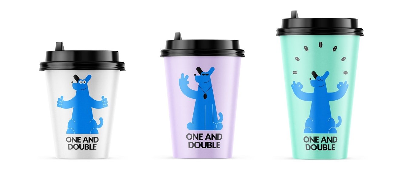 У Одди был предшественник. Поэтому при работе над новым персонажем было важно сохранить преемственность. Лояльные клиенты запомнили ONE AND DOUBLE прежде всего как кофейню с голубой собакой. Поэтому мы оставили голубой цвет и сохранили размер собаки.