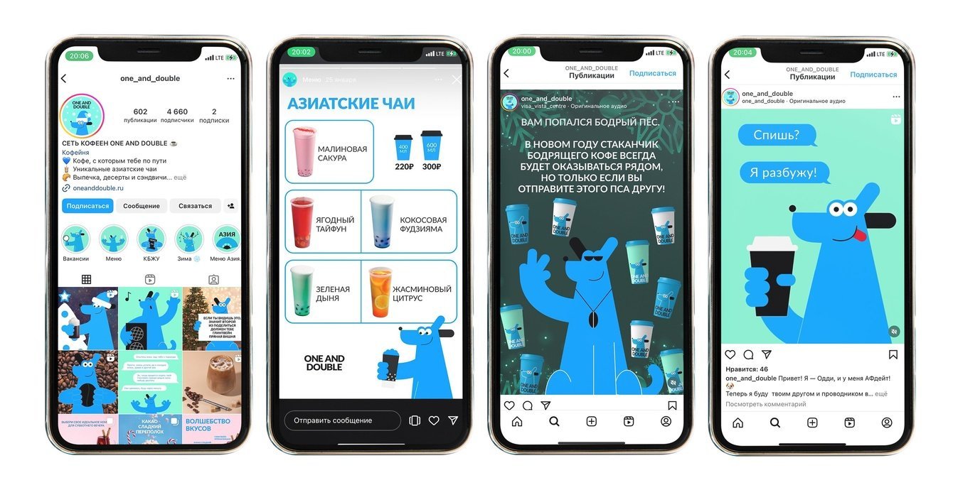 В основу визуального решения и нового позиционирования легко глубокое понимание потребностей целевой аудитории. А Одди уже подружился с гостями кофейни в социальных сетях, советует им выбрать новый десерт на страницах меню и желает хорошего дня на фирменных стаканчиках.