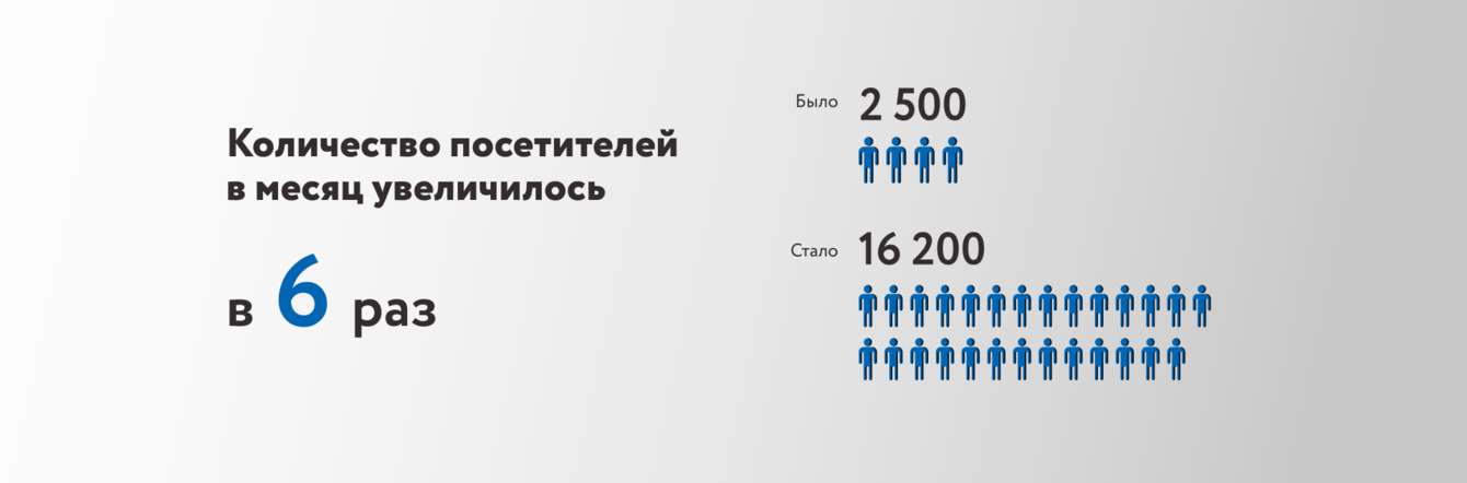 В результате работы трафик вырос с 2500 до 16200 посетителей в месяц.