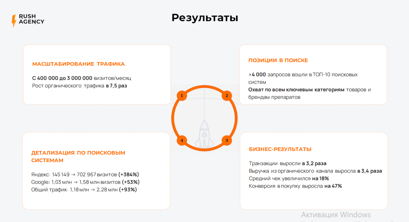 3.Увеличивать бизнес-показатели: транзакции и выручку в >3 раза через комплексную SEO-стратегию.