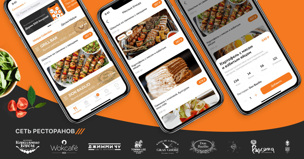 Приложение содержит полную информацию о каждом ресторане Madyar Collection: описание и фотографии интерьера, часы работы, актуальные меню, карту адресов и схемы проезда с расстоянием от клиента до заведения. Этой информации достаточно для принятия решения о заказе и визите как с эмоциональной, так и с рациональной точки зрения.