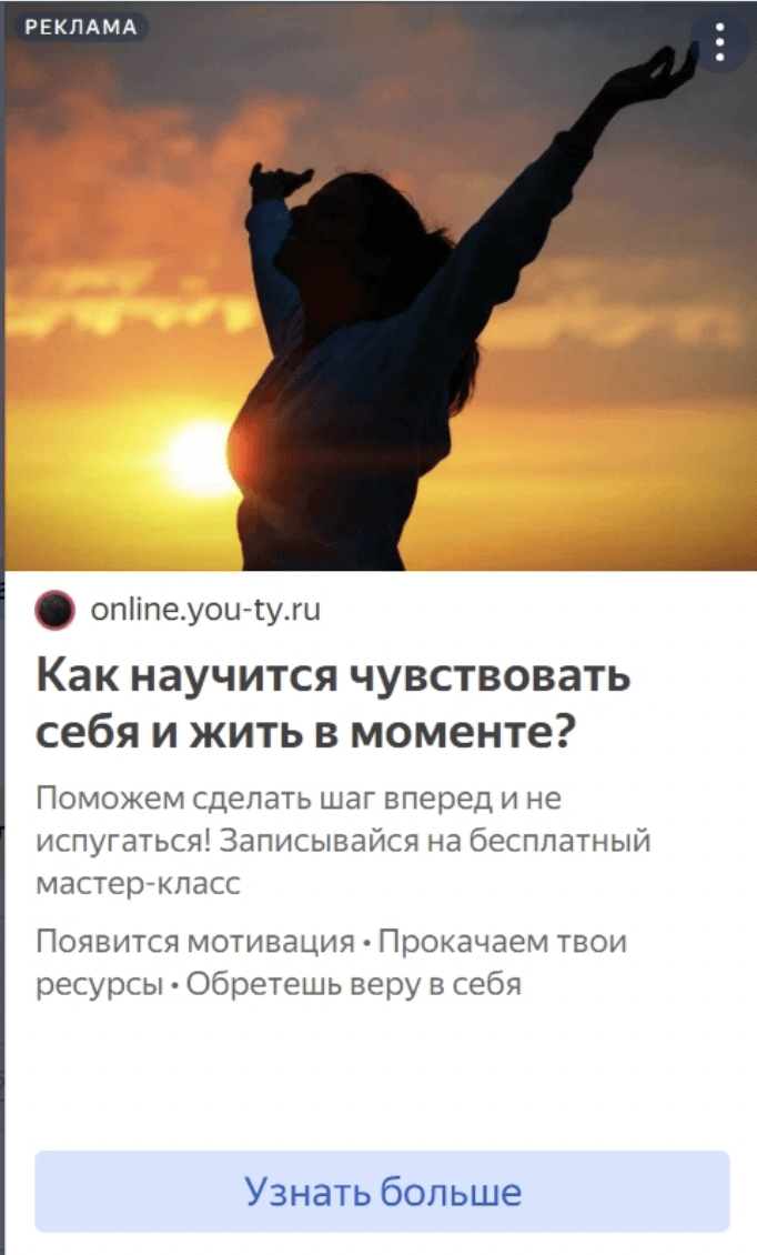 Ключевые фразы разделил по категориям : выгорание, вдохновение, бизнес тренер, мотивация, страхи, таланты, тайм-менеджмент, энергия и др. Это сделано для выявления наиболее эффективных категорий, после тестового периода было отключено 30% категорий и цена заявки сразу упала на 100 рублей
