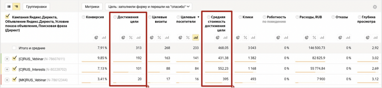 Были запущены кампании в РСЯ по ключевым фразам и интересам.