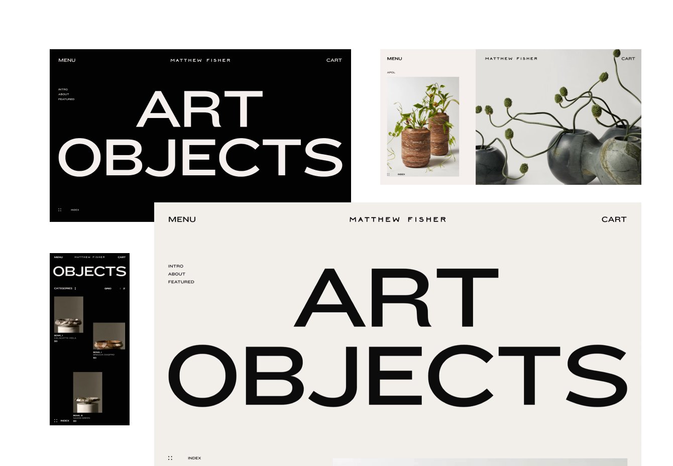 Цифровой шоукейс художника Мэттью Фишера из Нью-Йорка. Мэтью хотел создать сайт, который бы привлекал внимание арт-сообщества США и Нью-Йорка в частности. Нужно было заявить о себе, поэтому мы с партнерами вложили много сил в дизайн, плавность анимаций и общее ощущение премиумности.