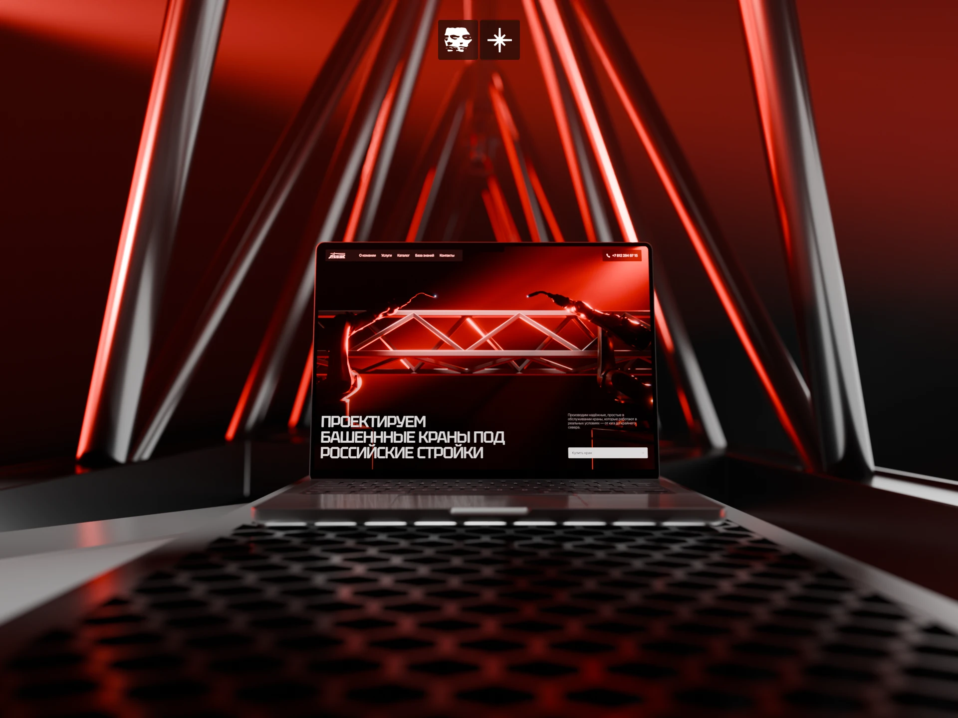 3D-модели по реальным чертежам кранов бренда, анимированные в брутальном индустриальном стиле, стали центральной идеей дизайна сайта.