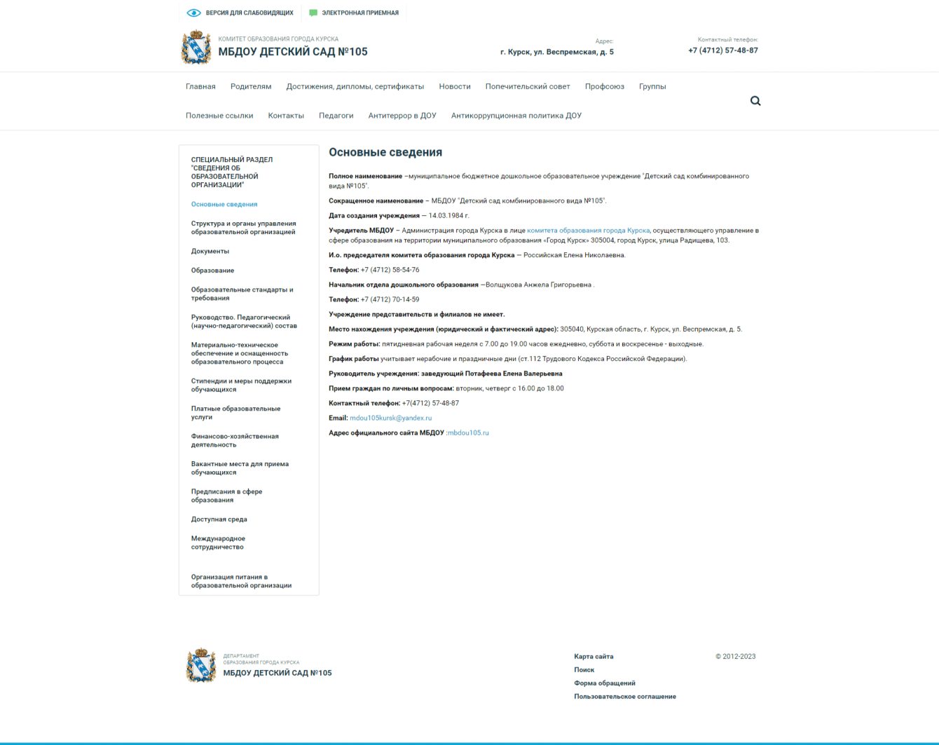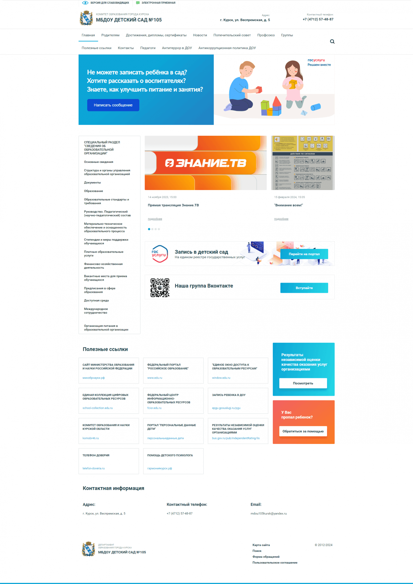 Клиент: МБДОУ Детский сад № 105 г. Курска