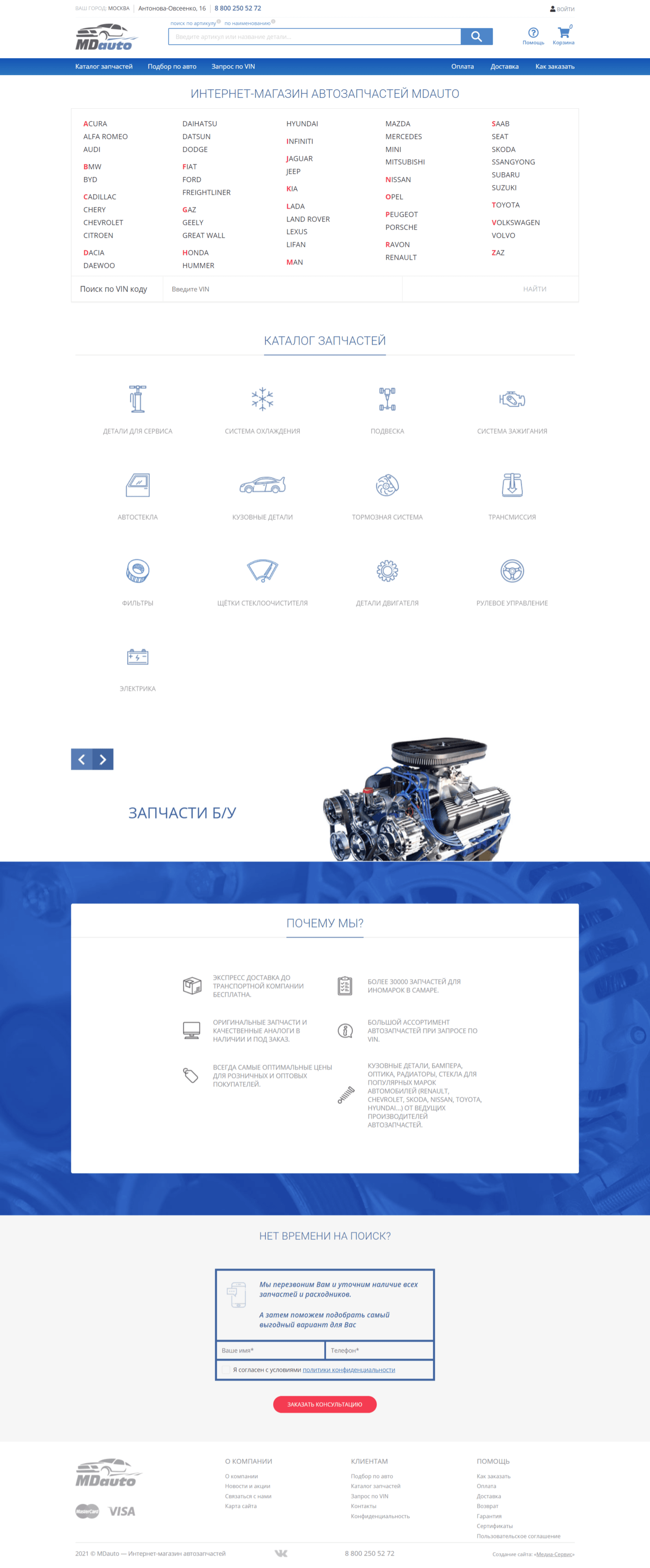 Также реализован поиск запчастей по VIN номеру, артикулу или наименованию.