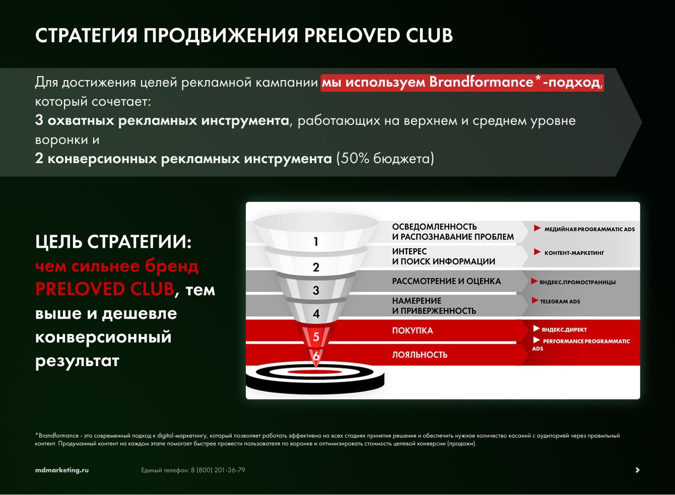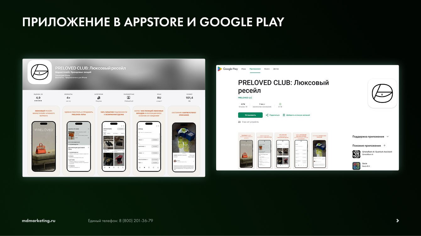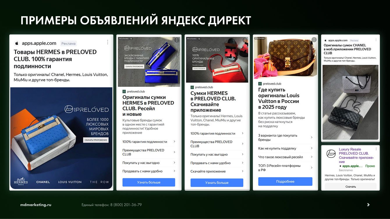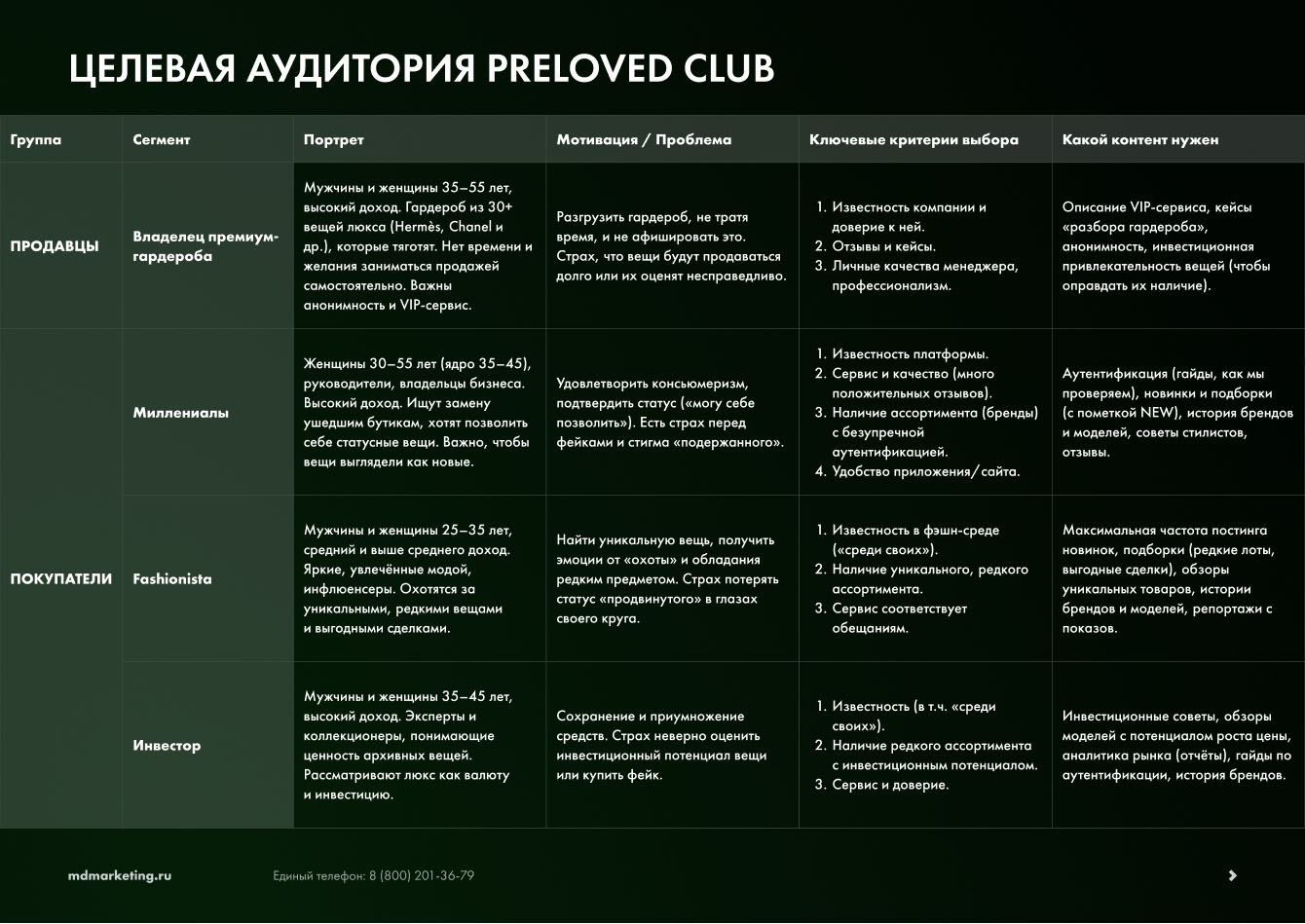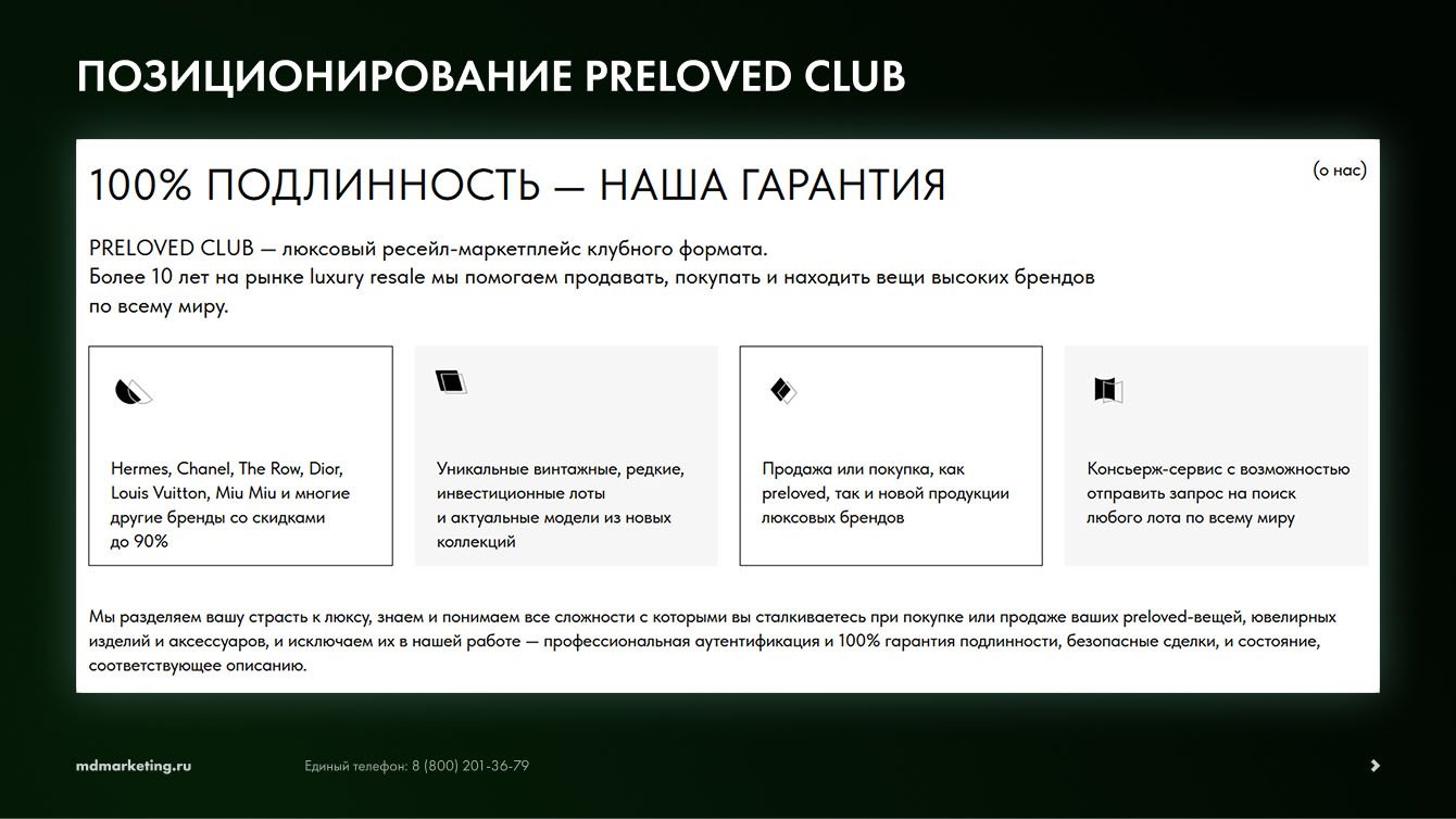 Наш клиент — Preloved Club, люксовая ресейл-платформа клубного формата, которая реализует только оригиналы люксовых брендов. Компания с 10-летней историей, но к моменту нашего знакомства в августе 2024 года она существовала преимущественно «в тени»: продажи велись через пять Telegram-каналов, сайт был нефункциональным и не обновлялся, позиционирование — размытым. При этом компания готовила важный стратегический шаг – запуск мобильного приложения, вокруг которого не было выстроено никакой маркетинговой инфраструктуры.