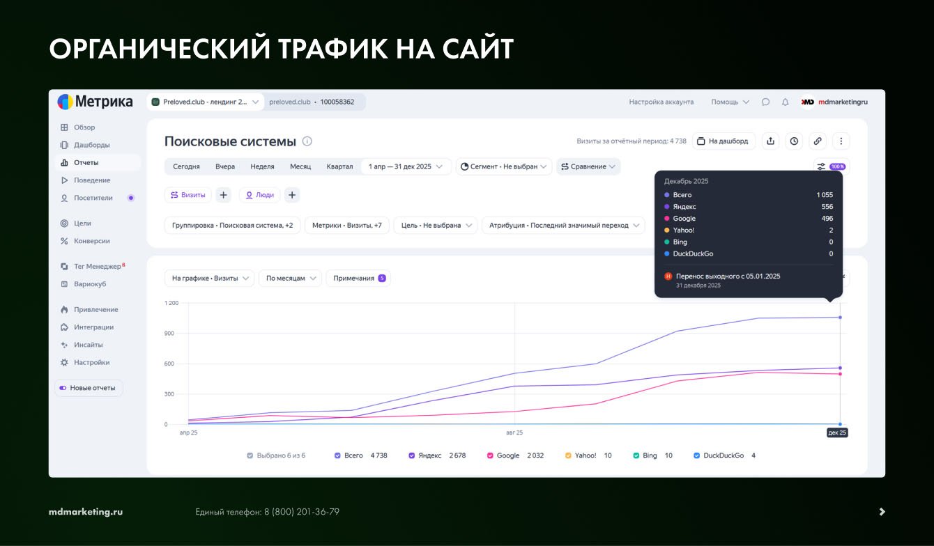 Этот рост подтверждает, что выбранная стратегия – ставка на экспертный контент и системные коммуникации – работает даже против игроков с многолетней историей и большими бюджетами.
