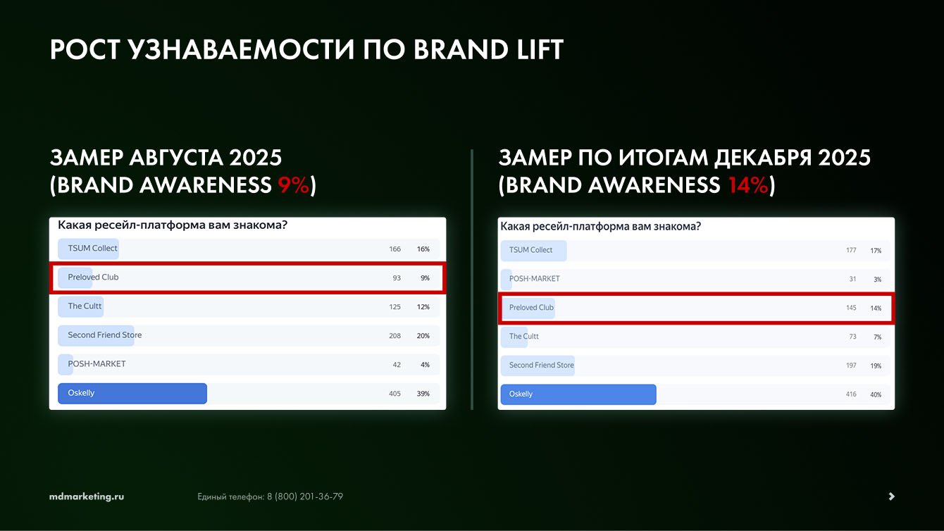 В узкой нише люксового ресейла при ограниченном бюджете и наличии сильных конкурентов (Oskelly, TSUM Collect, THE CULTT) мы добились значительного прогресса: