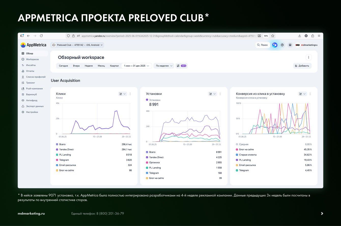 • выстроили систему аналитики (Яндекс.Метрика + AppMetrika) и подневной отчетности, чтобы измерять эффективность каждого вложенного рубля;