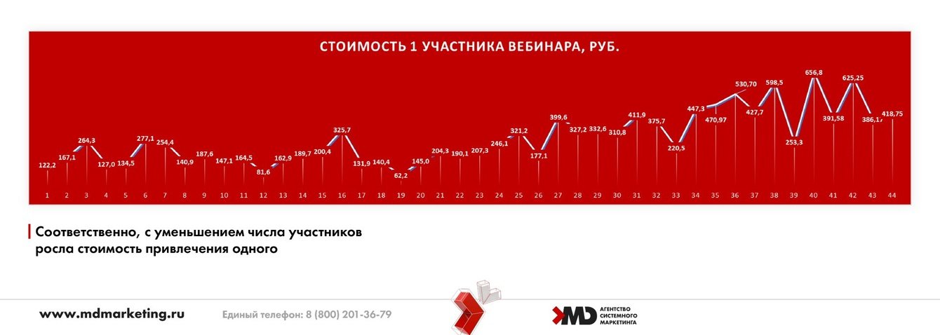 1. После пандемии резко возросло число онлайн-мероприятий. Сначала люди охотно посещали их, но затем началось перенасыщение рынка, возрос уровень шума от инфобизнесовых проектов. Доходимость до вебинаров снижалась, стоимость лида незначительно, но росла. С этим мы справились постоянной оптимизацией рекламных кампаний, обновлением и реактивацией выгоревших аудиторий, регулярной сменой креативов, использованием статических и видеокреативов. Строго следили за ценой участника.