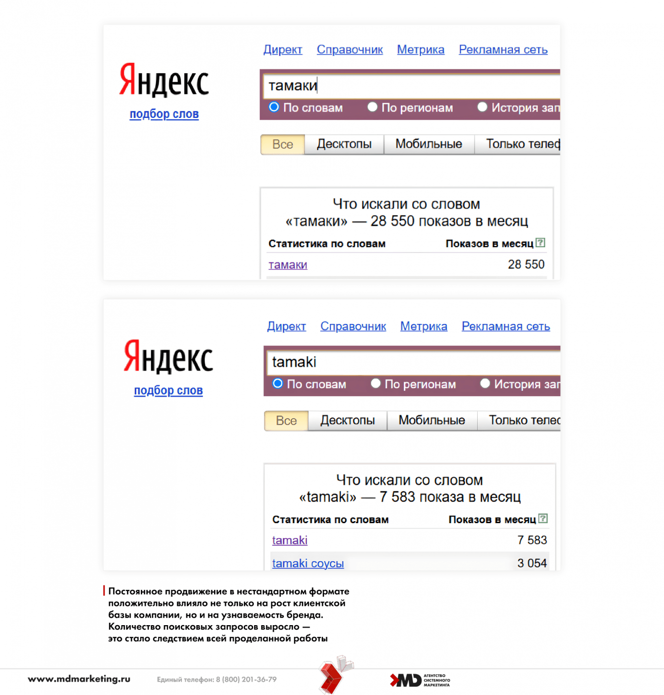 Повысилась узнаваемость компании: об этом говорит выросшее число брендовых запросов «тамаки» и tamaki: