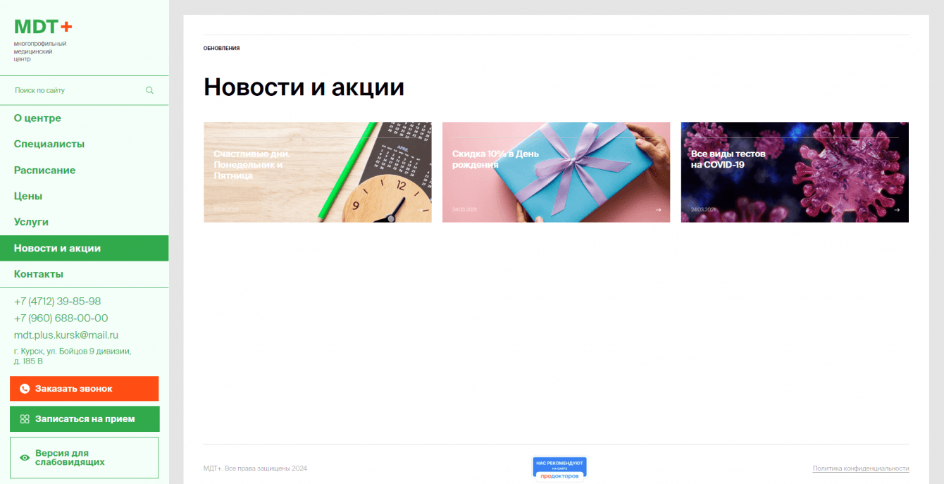 Клиент: Многопрофильный медицинский центр «МДТ+»