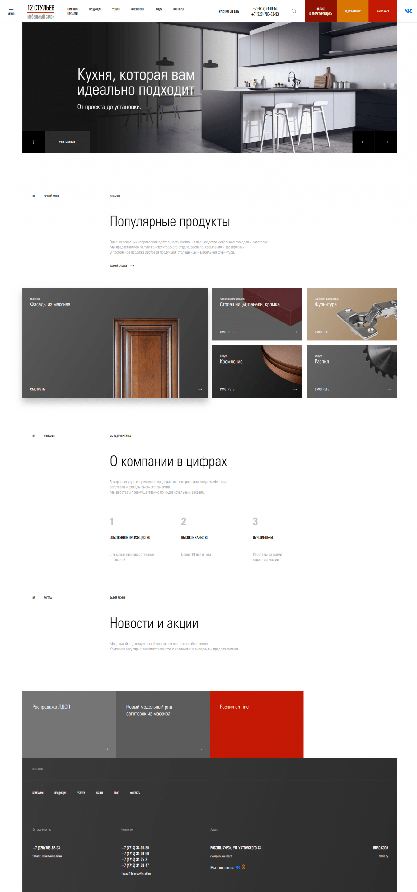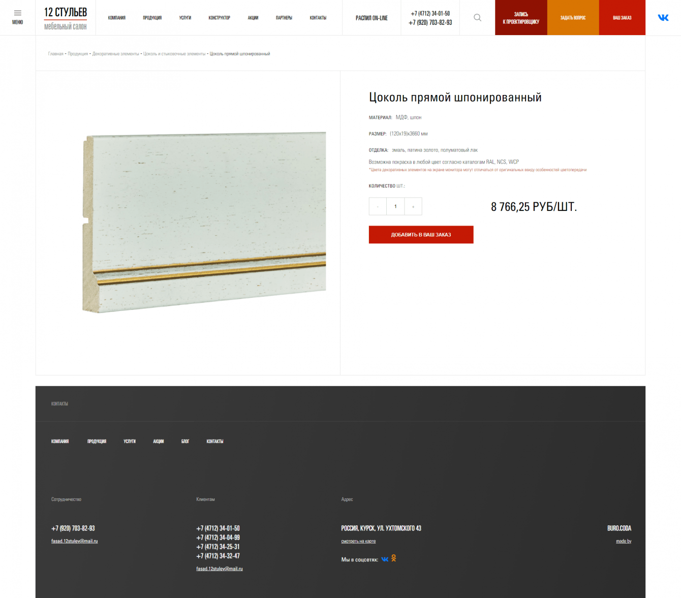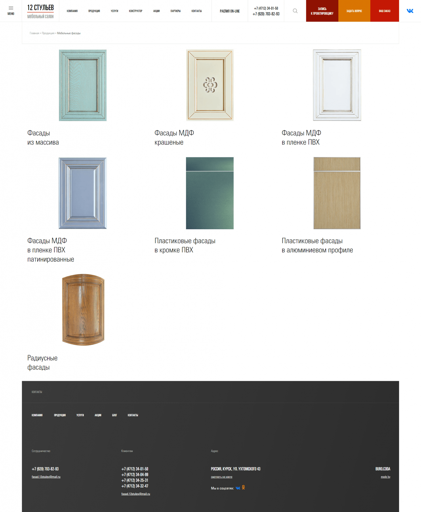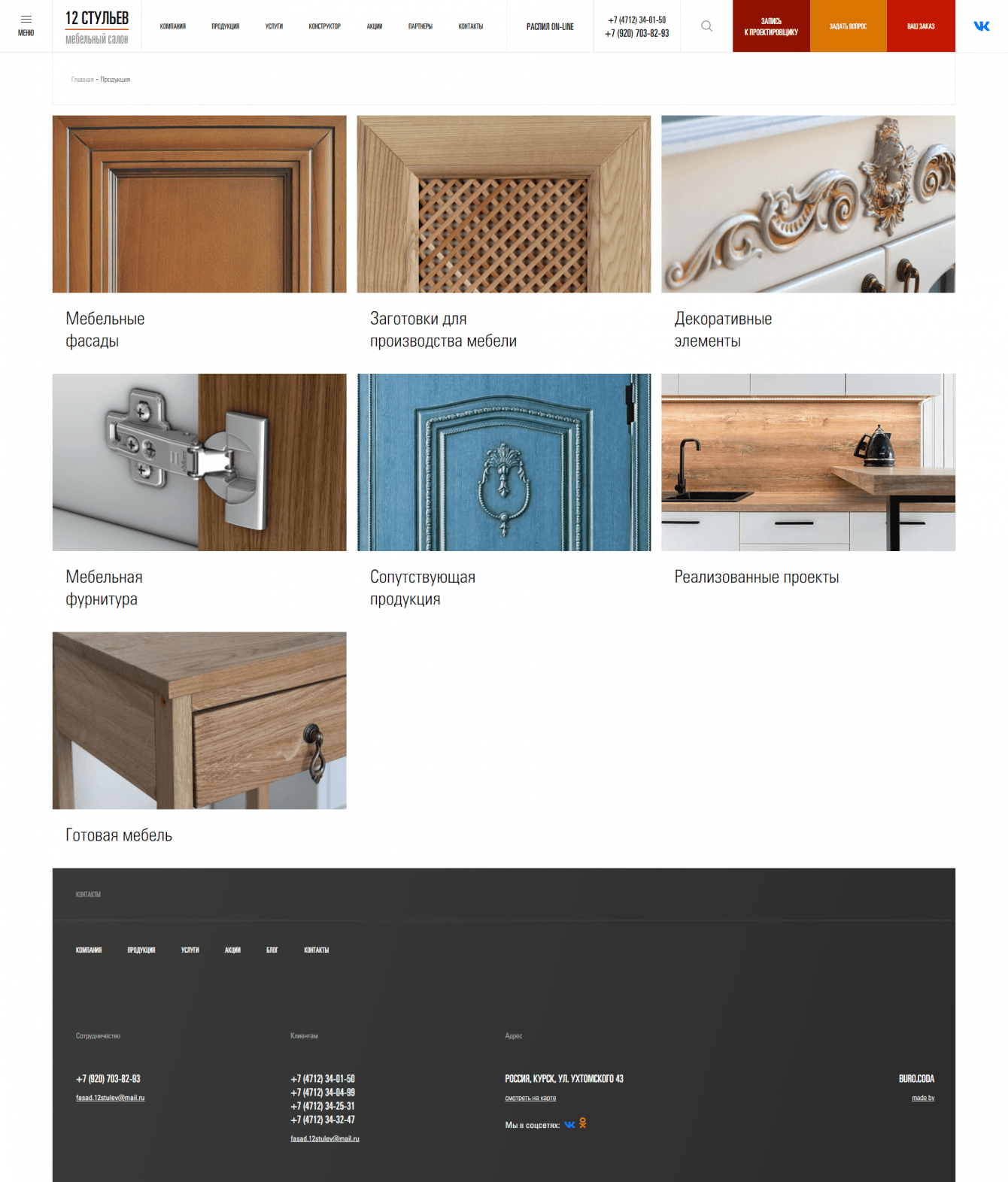 Клиент: Мебельный салон «12 стульев» - быстрорастущее современное предприятие, которое производит мебельные заготовки и фасады высокого качества. Работает преимущественно по индивидуальным заказам и выполняет условия самого требовательного клиента.