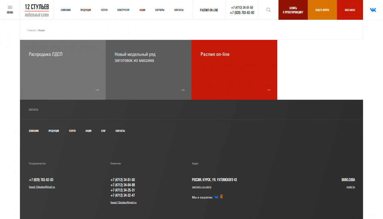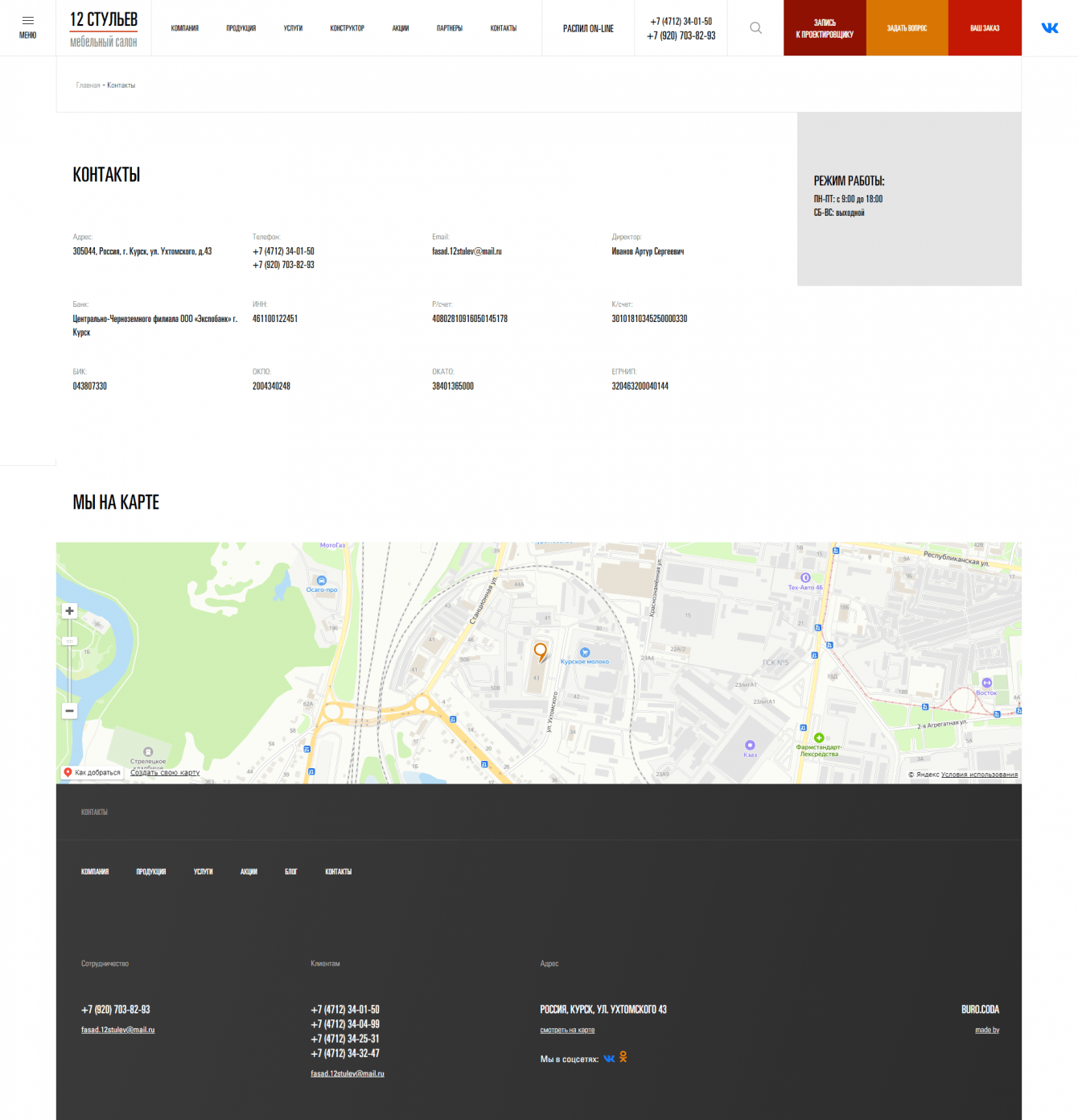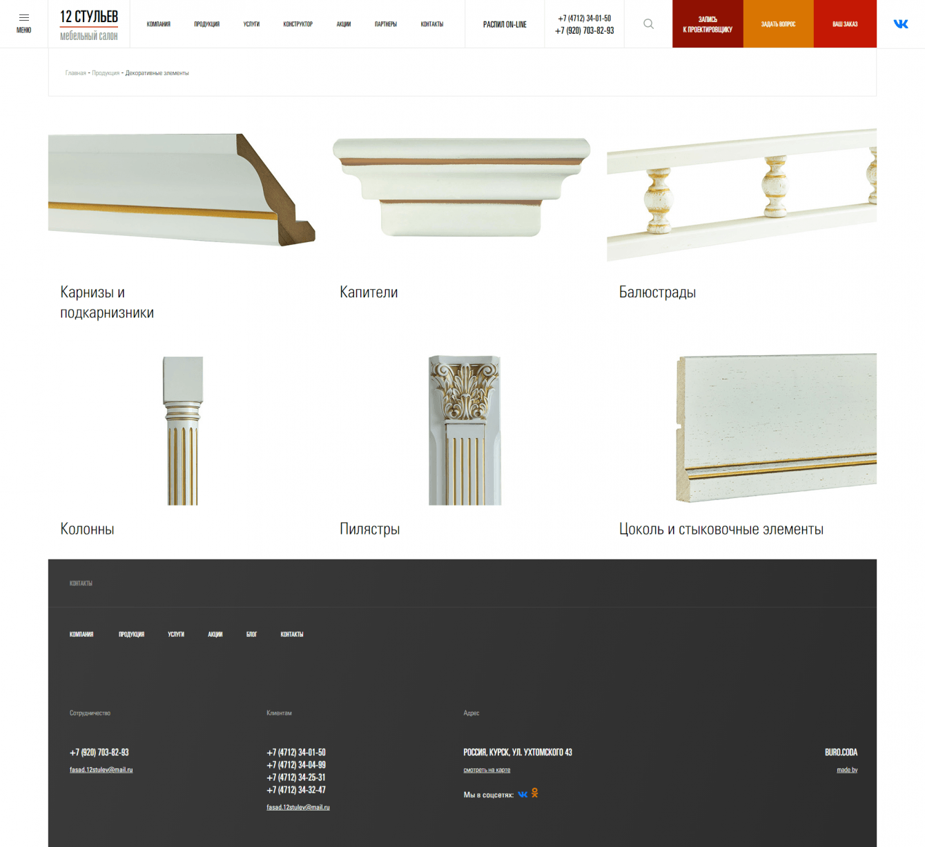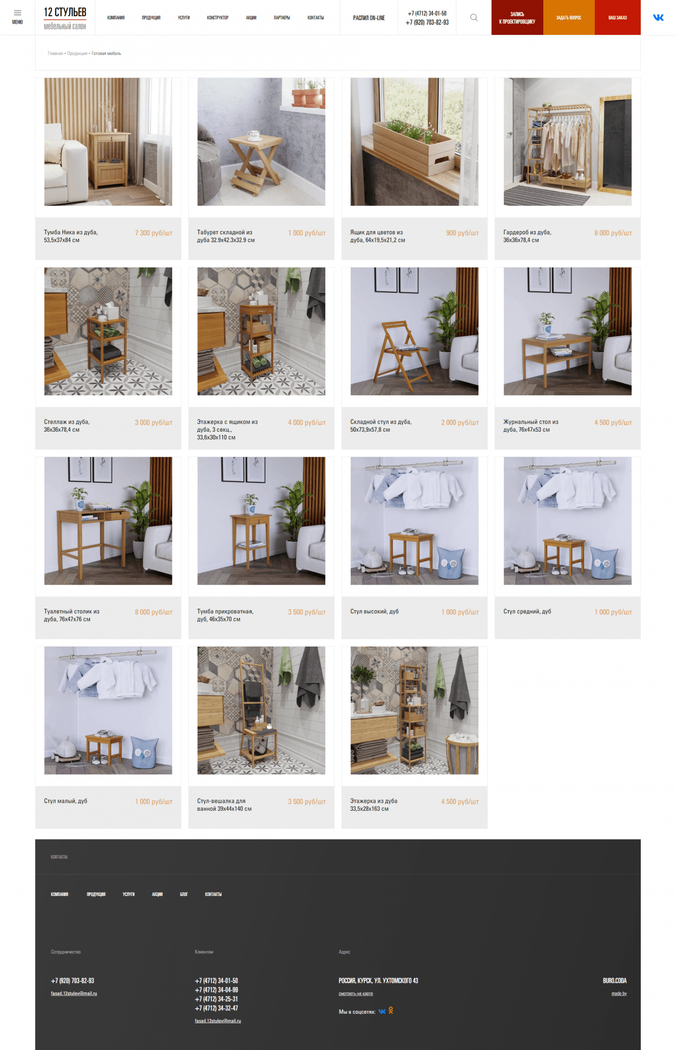 Клиент: Мебельный салон «12 стульев» - быстрорастущее современное предприятие, которое производит мебельные заготовки и фасады высокого качества. Работает преимущественно по индивидуальным заказам и выполняет условия самого требовательного клиента.