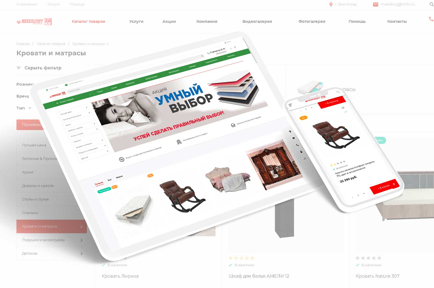 Сайт-каталог «под ключ». Комплексный веб-проект сайта сети мебельных салонов, в Волгограде, Астрахани, Волжском, Михайловке, Камышине и Фролово всего 47 мебельных салонов включающий дизайн, программирование калькуляции заказа, верстку и первичную SEO оптимизацию сайта.