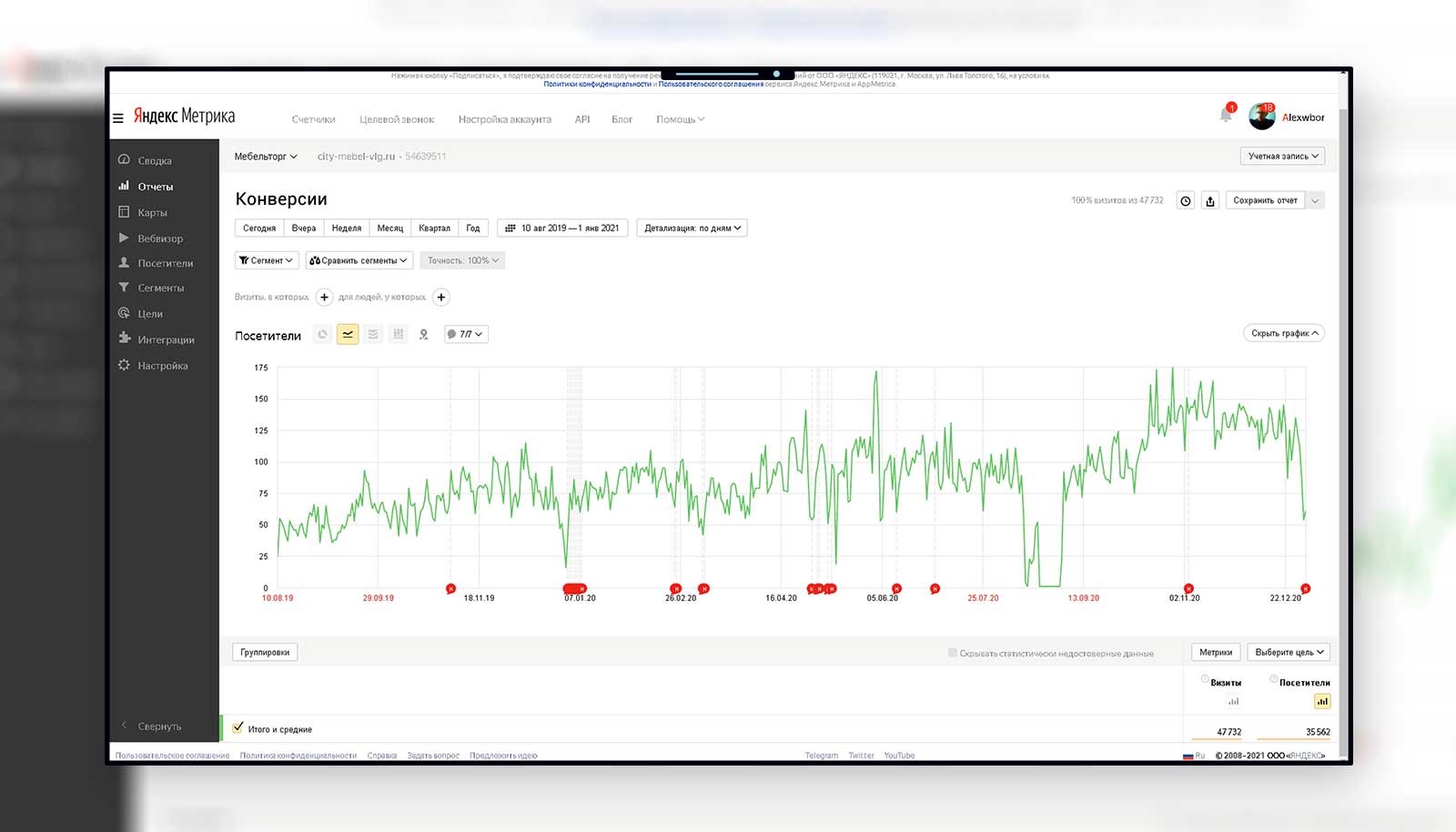 Созданный сайт и каналы продвижения позволили получать конверсию по покупкам и звонкам покупателей с фактического 0% по состоянию на момент создания до 17% от всего трафика сайта