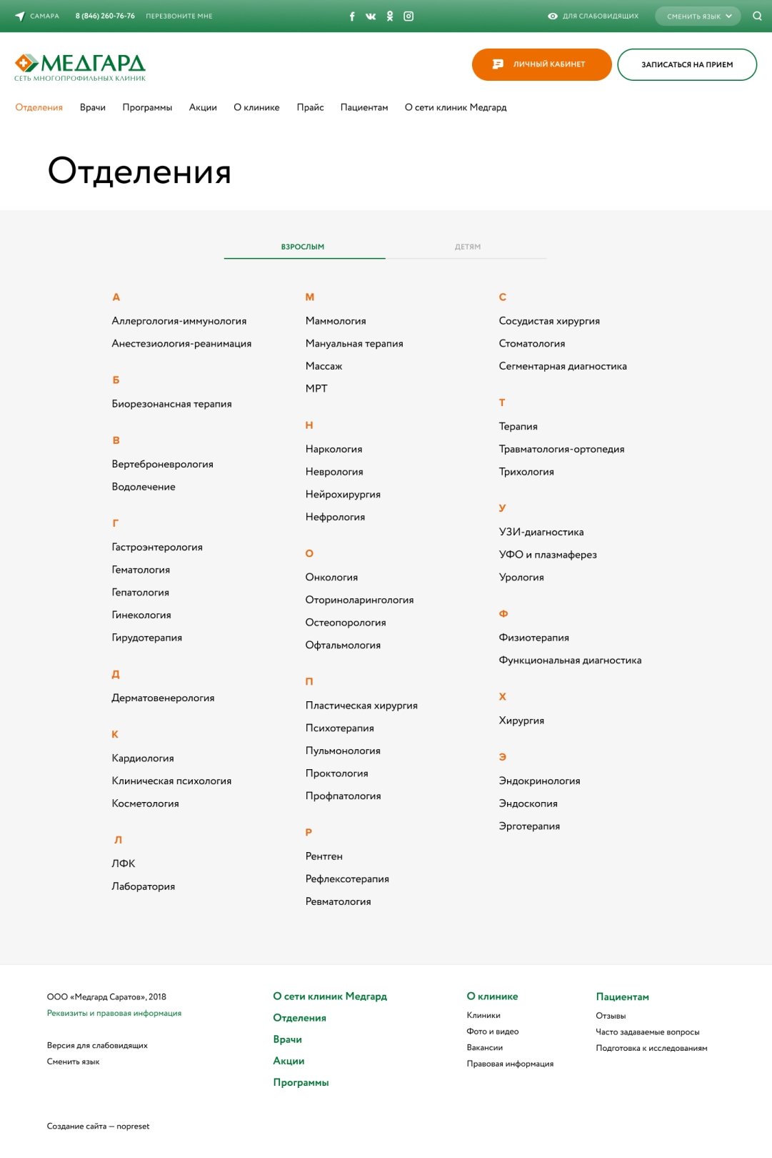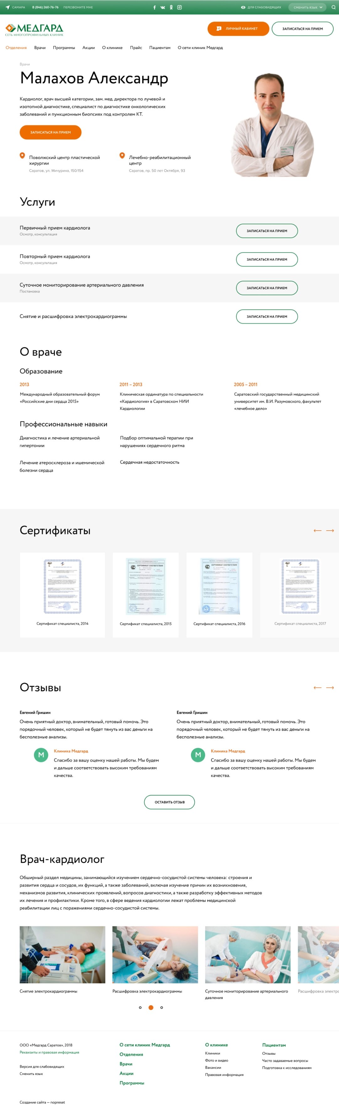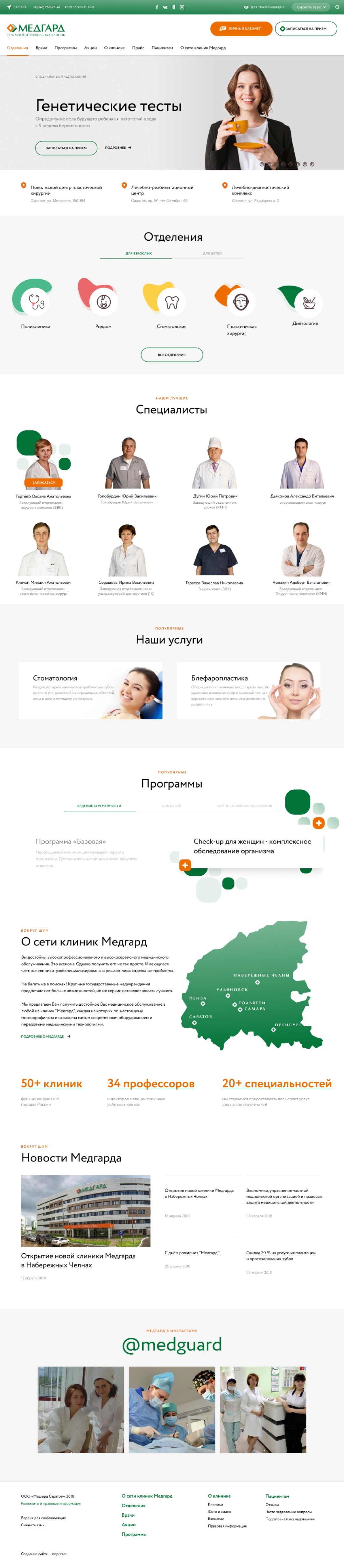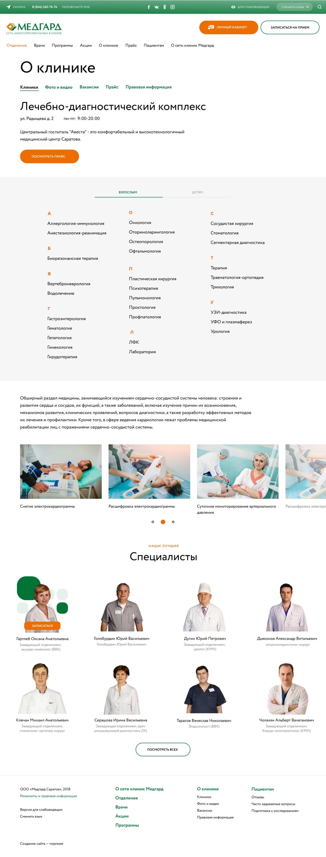 В результате совместной работы с клиентом, был разработан корпоративный сайт сети клиник.