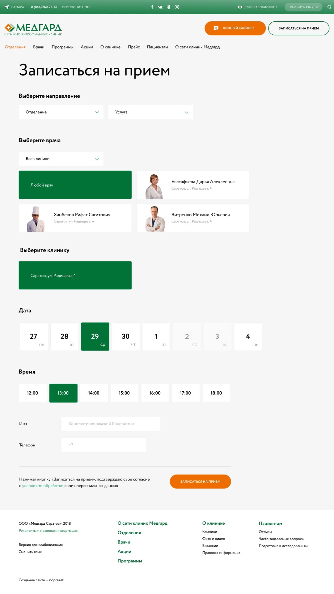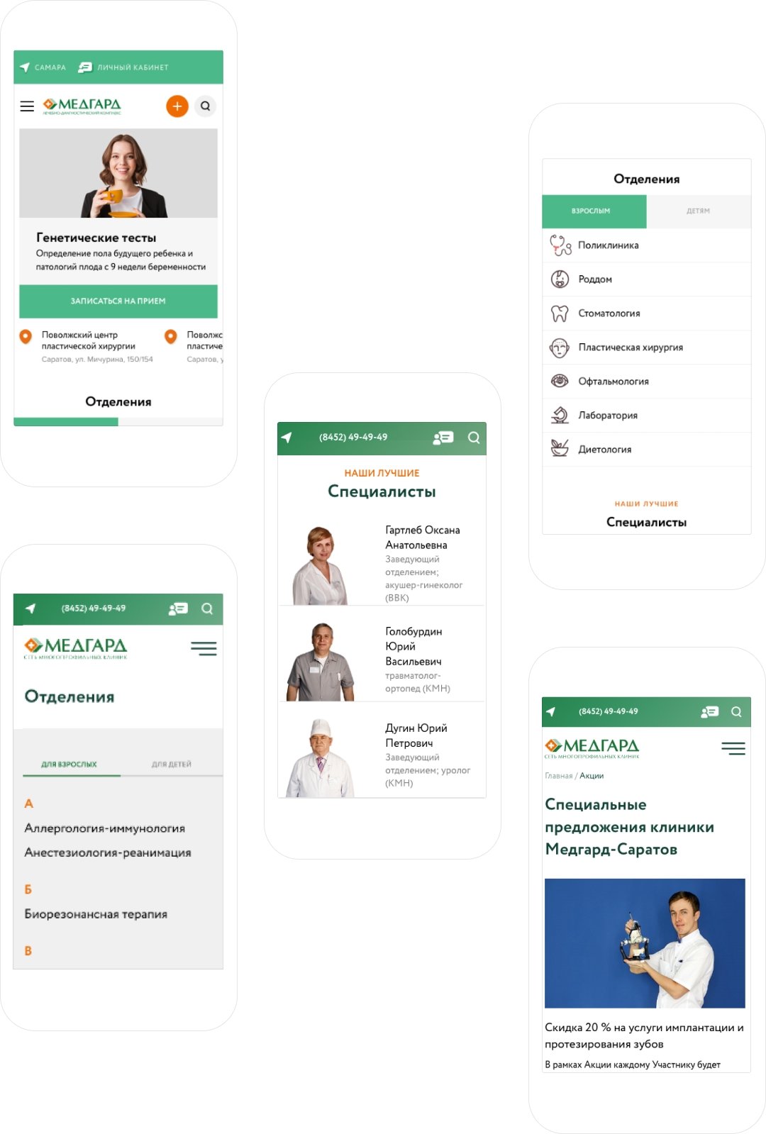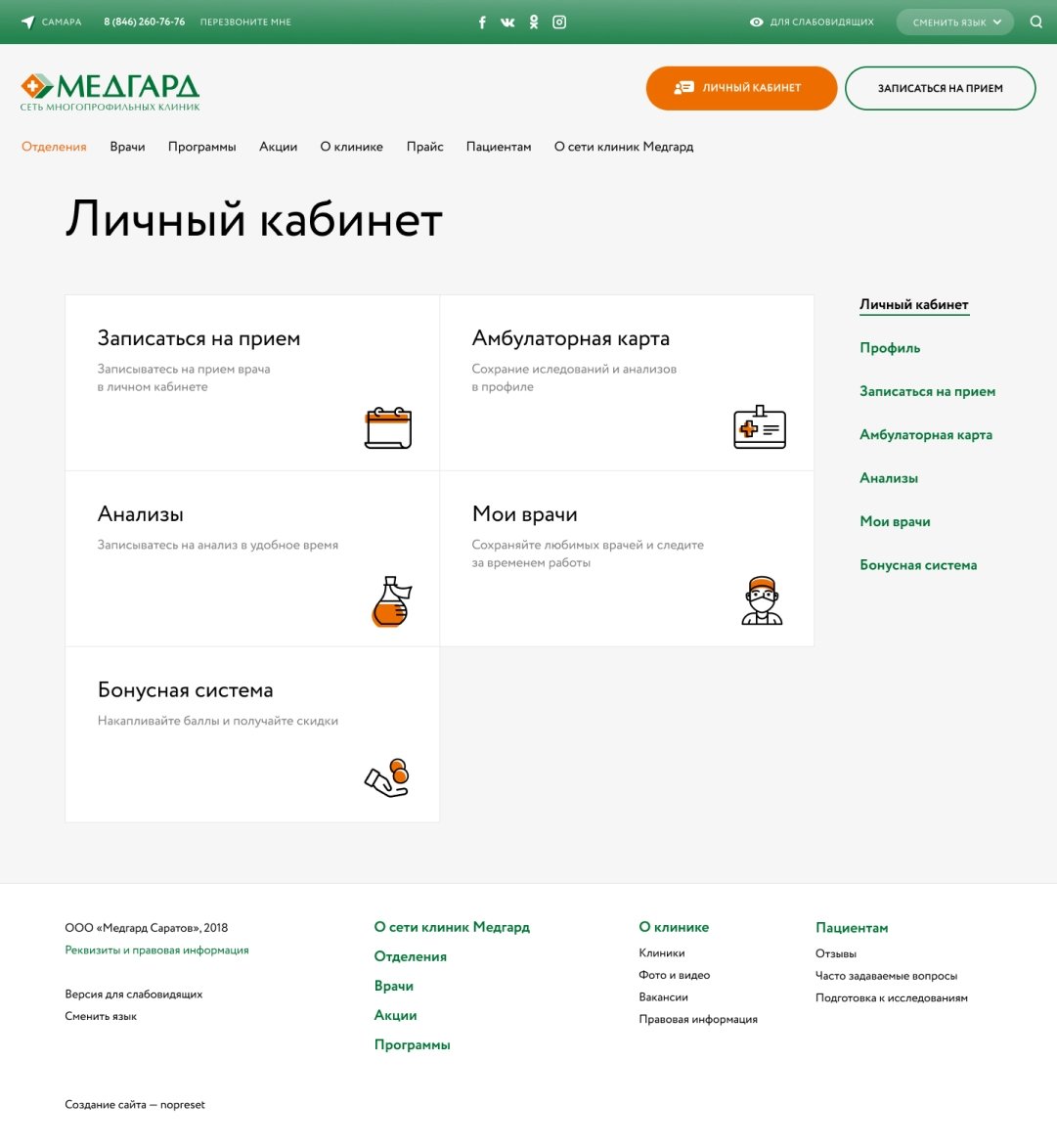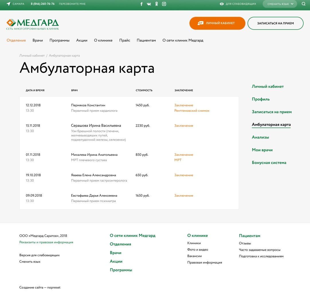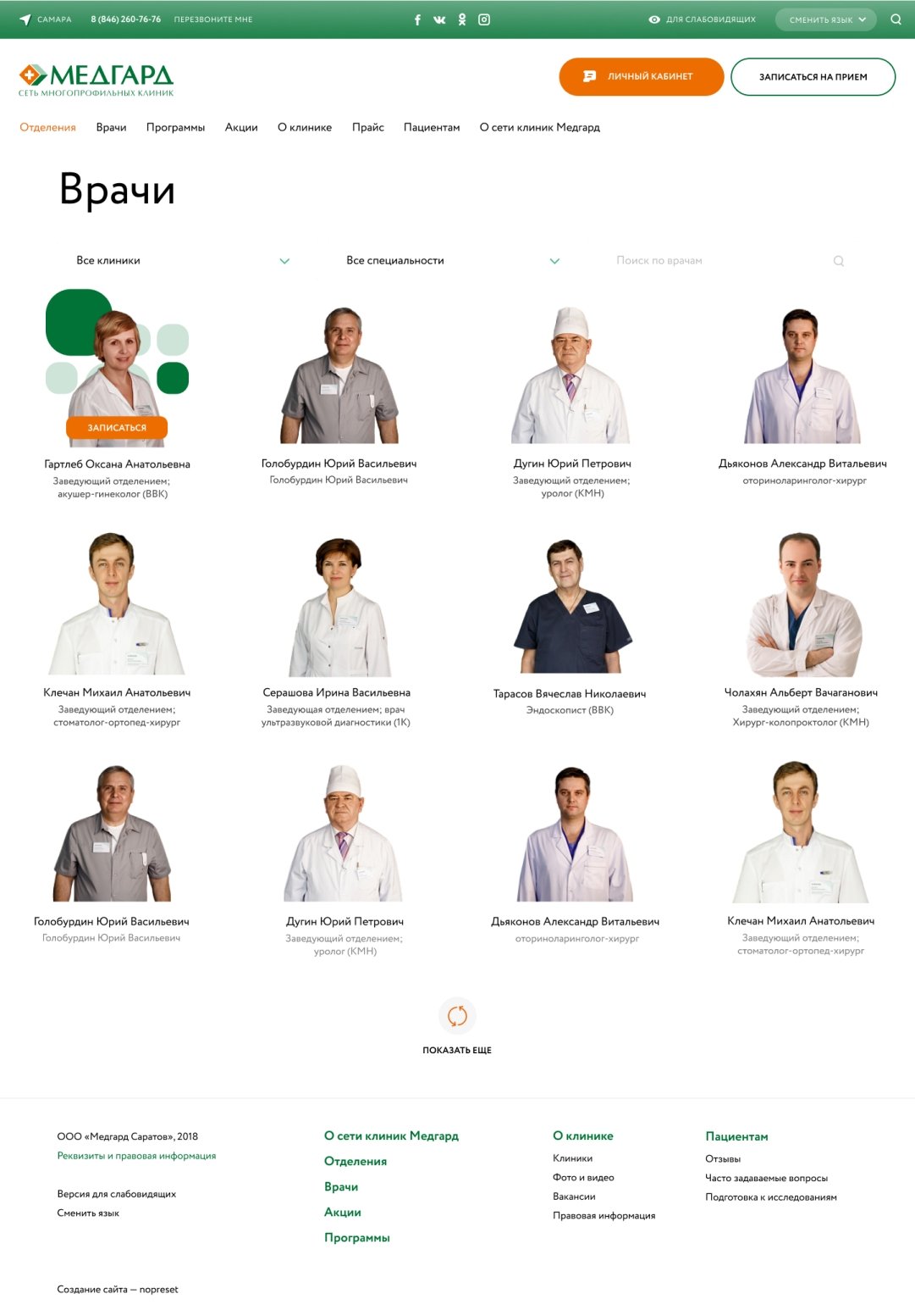 В результате совместной работы с клиентом, был разработан корпоративный сайт сети клиник.