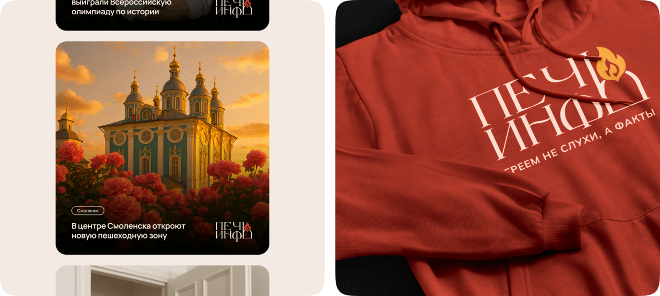 В итоге «Печь.Инфо» вышло на рынок с айдентикой, которая сразу выделяет его среди конкурентов и создаёт эмоциональный якорь доверия.