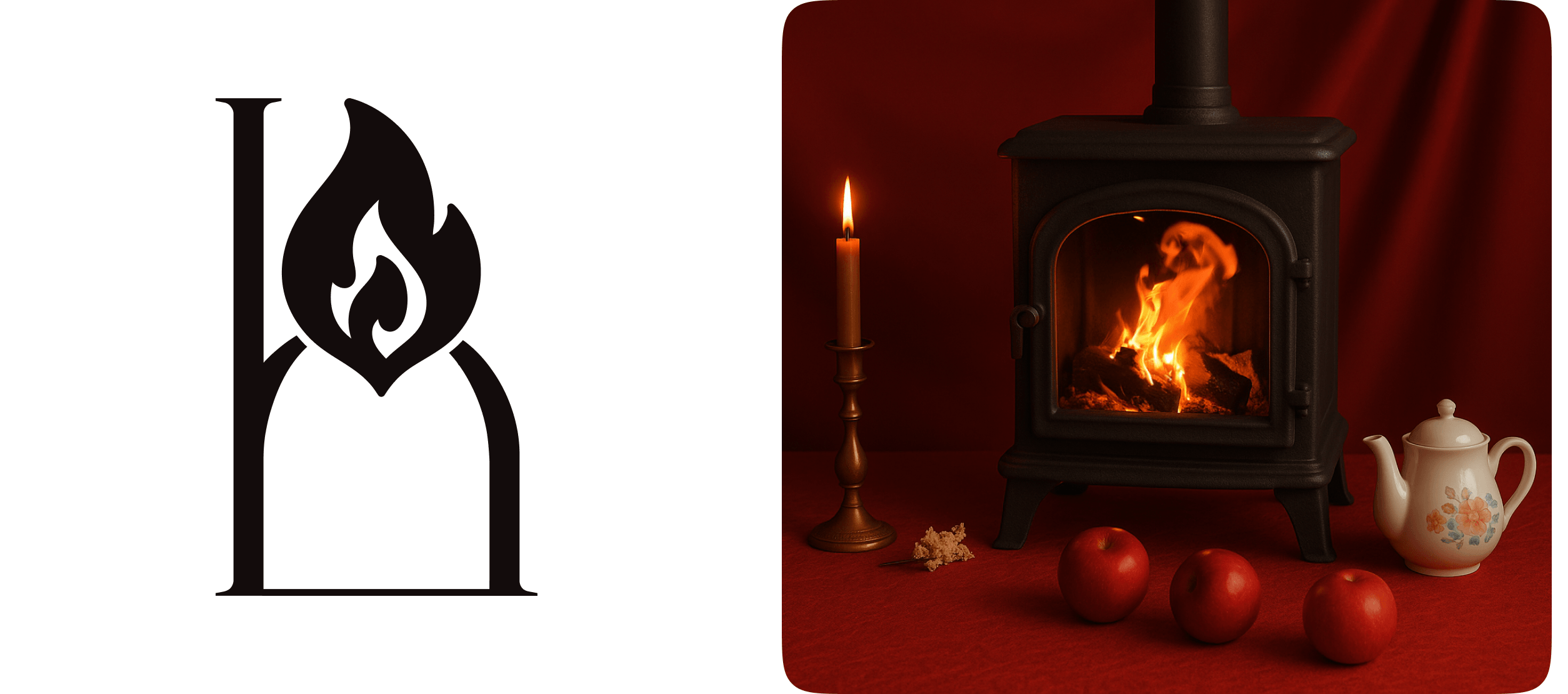 Мы взяли образ печи и огня, интерпретировав его как символ тепла, локальной идентичности и защиты от «думскроллинга». Отсылка к старорусскому ремеслу появилась через геометричность форм и цветовую палитру.