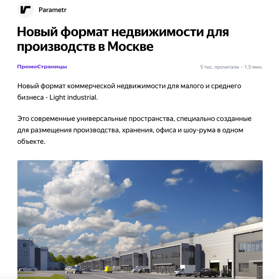 Чтобы найти свою аудиторию, мы подготовили материал на широкую тему для собственников производств: «Новый формат недвижимости для производств в Москве».