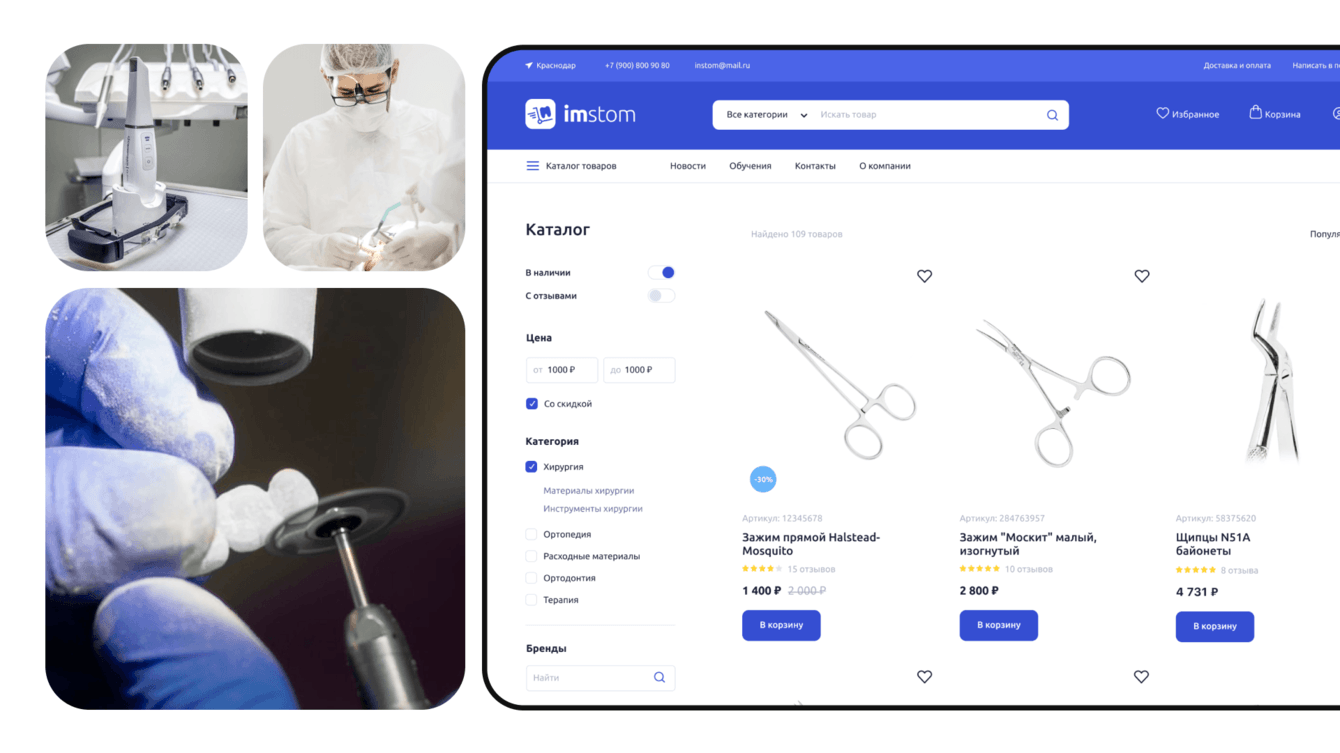 Задача: разработка маркетплейса для продажи стоматологических инструментов, медикаментов и расходных материалов. Основными потребителями являются врачи из разных отраслей стоматологии.
