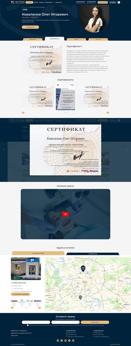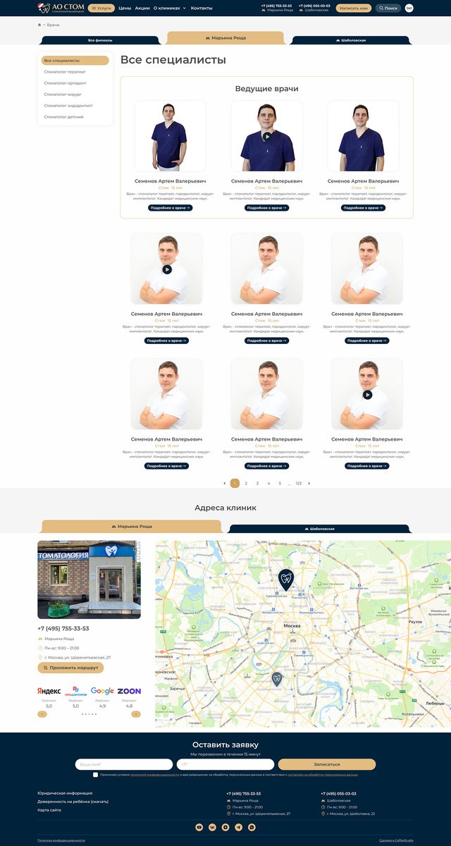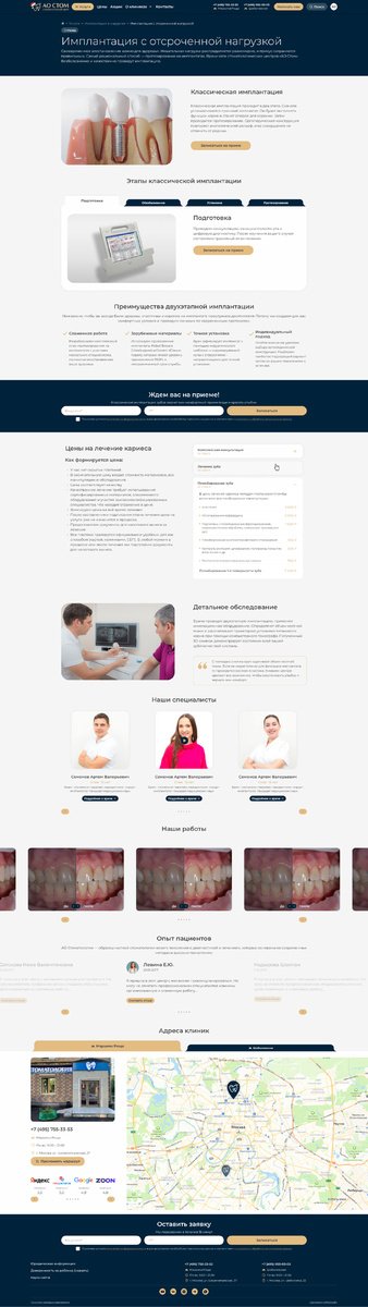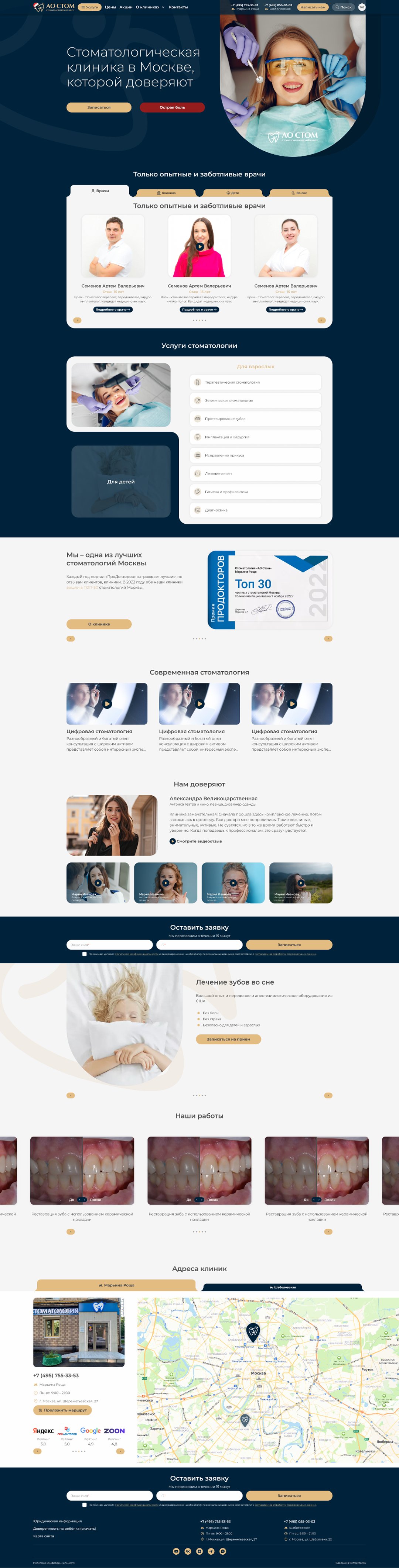«АО Стом» – сеть стоматологических клиник в Москве. Клиент обратился в CoffeeStudio за комплексным решением: разработка сайта, его SEO-оптимизация и запуск рекламы.