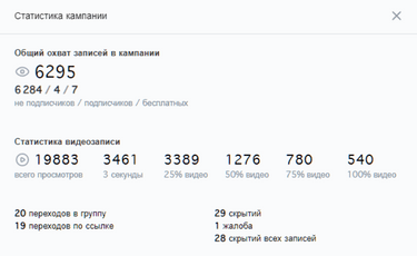 Исходный материал сильно влияет на показатели вовлеченности аудитрии. По отчетам видно, что в ВК ролики заходят гораздо лучше и подписчики растут активнее.