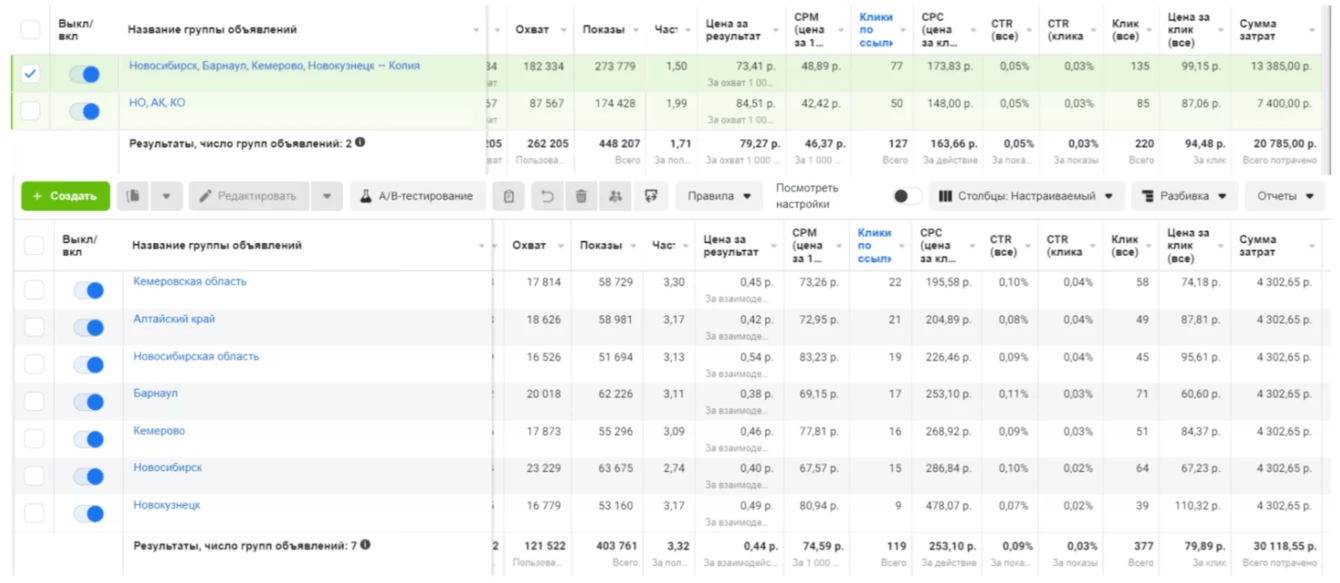 Остройка социальных сетей для целей Охват происходит гораздо быстрее, чем для других целей. Поэтому мы видим, что во всех сетях есть возможность улучшить прогнозируемые результаты.