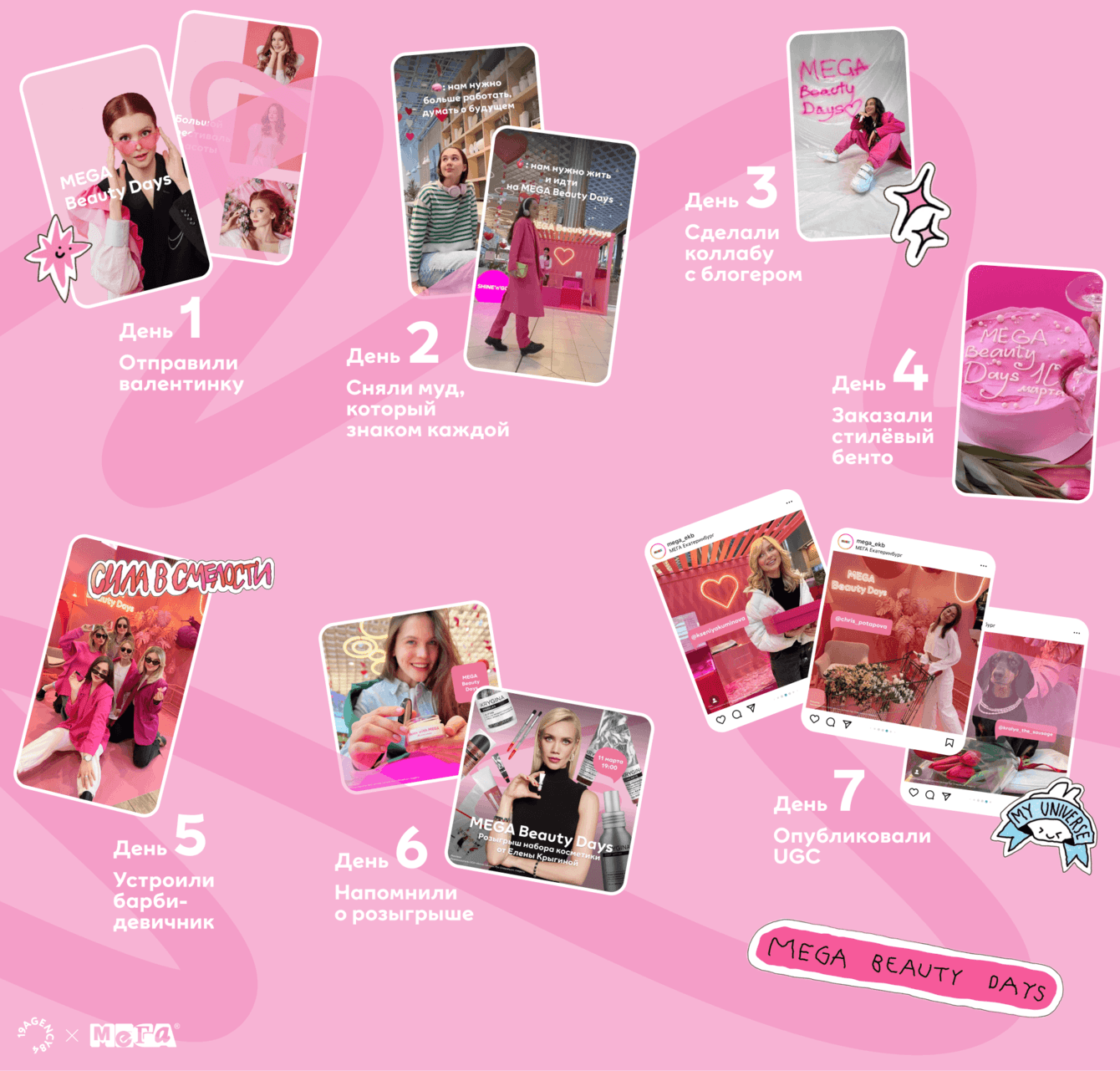 7 дней — 7 разных форматов. Мы устроили розовый бум в ленте, каждый день анонсируя программу в новом нестандартном формате.