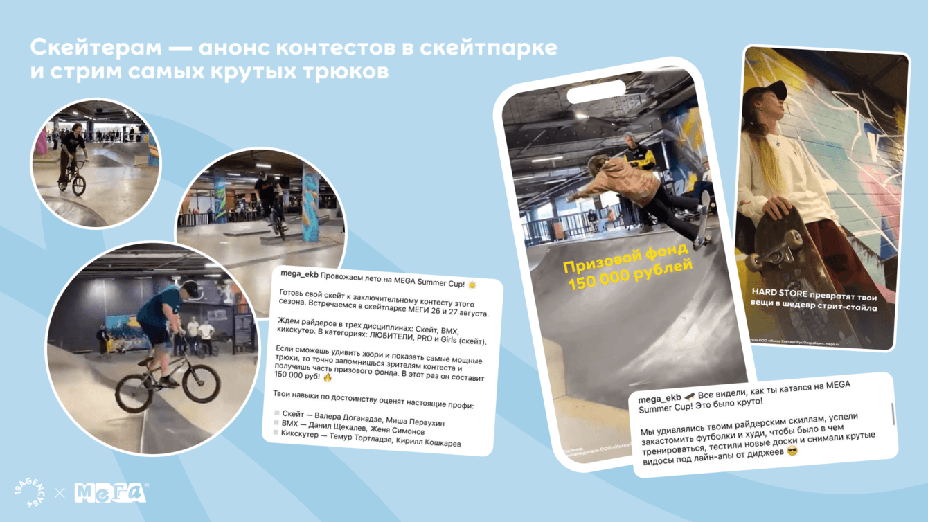 Теперь мы общаемся в соцсетях не с абстрактными пользователями, а с конкретными людьми: с бьюти-блогерами, которые ищут замену любимым брендам; с ребятами из скейт-парка, которые живут от контеста до контеста; с родителями, которым нужно и детей занять, и стильные луки им найти, и чил поймать.