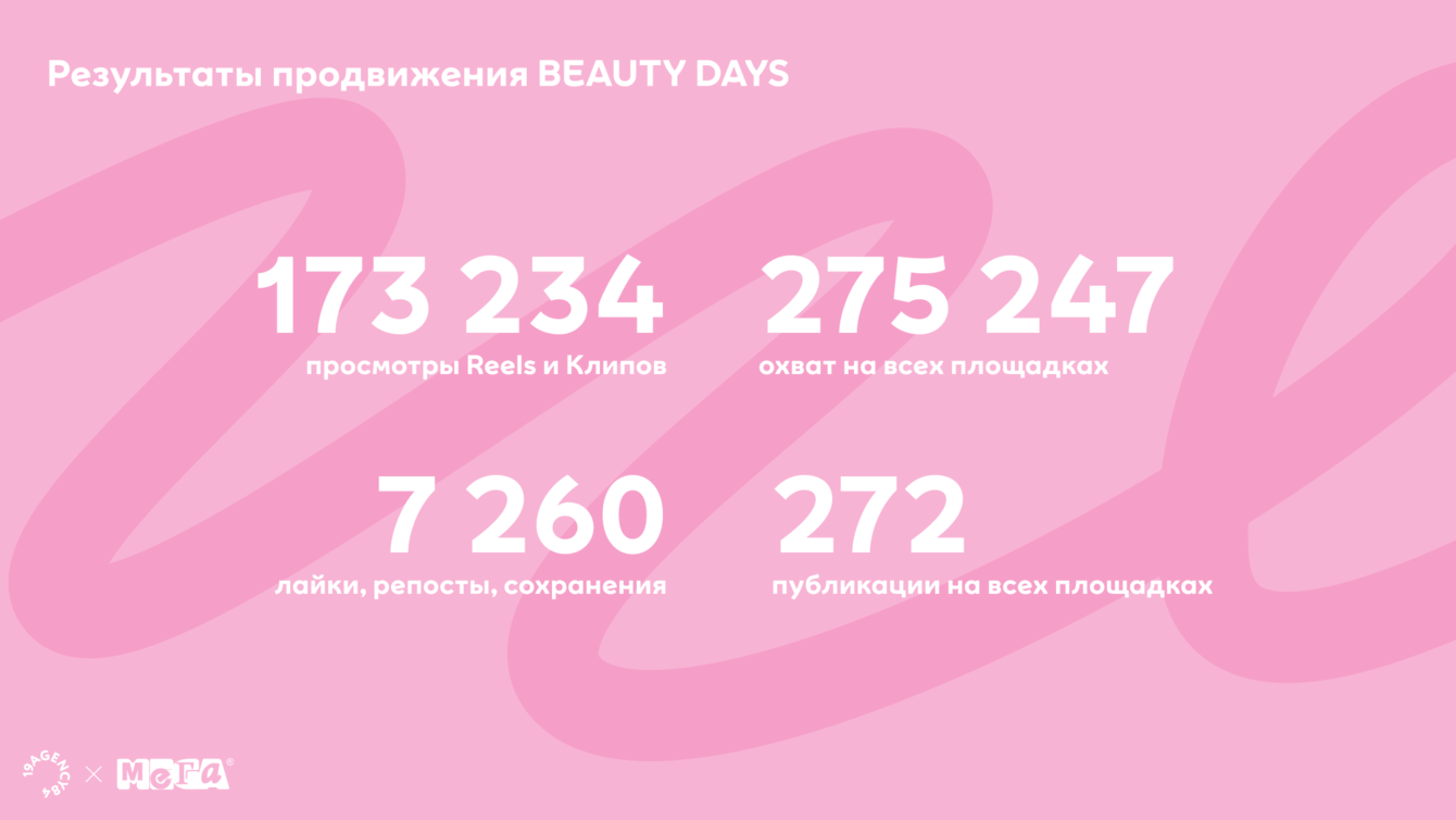 MEGA BEAUTY DAYS — это большой фестиваль красоты, который 7 дней шёл в МЕГЕ. С нами была Крыгина, Нечаев, бьюти-блогеры из Москвы и Питера. Ежедневно мы освещали консультации стилистов, паблик-токи и мастер-классы, продвигали чековое промо и розыгрыш 50 кг косметики.