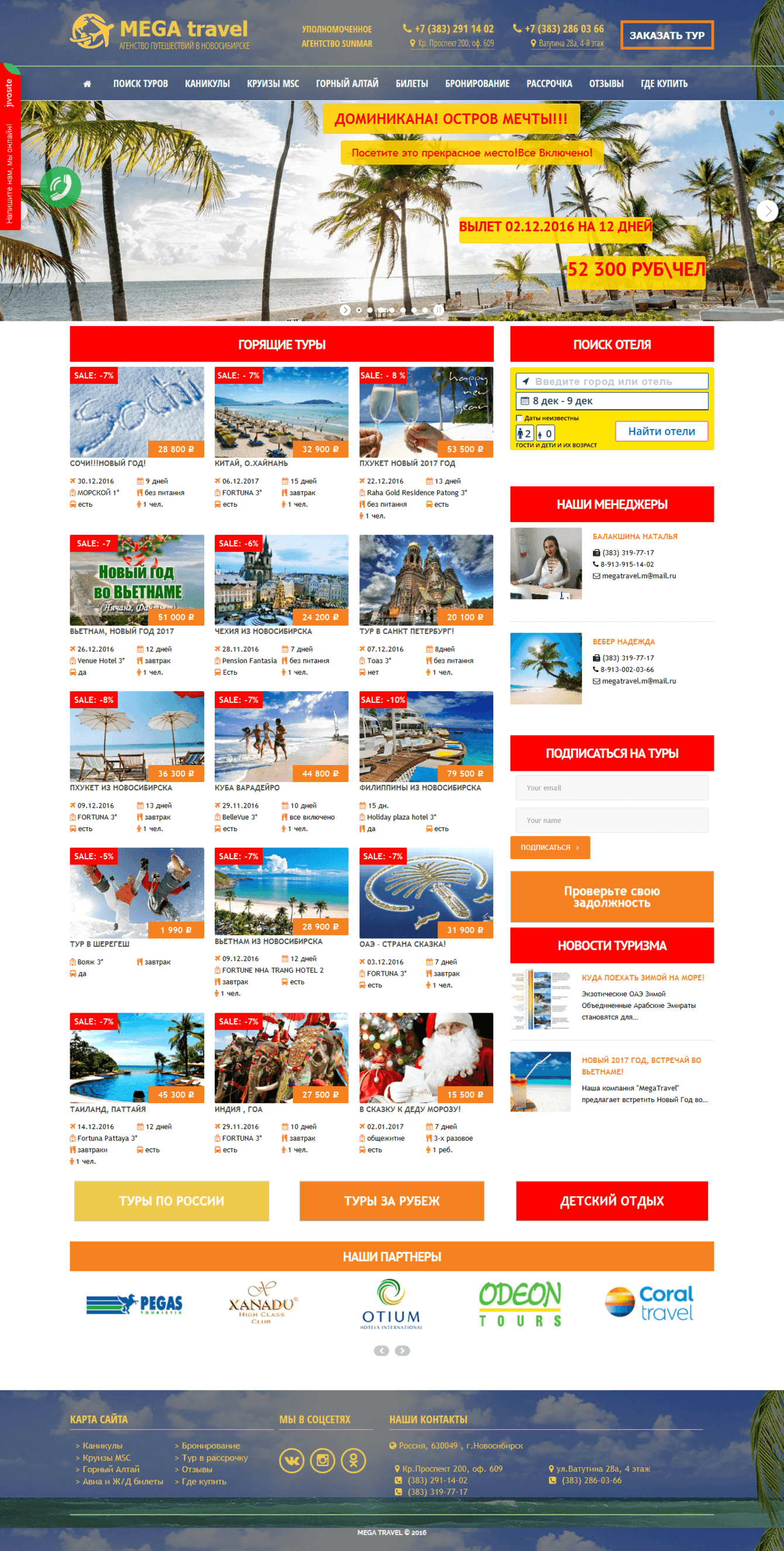 Компания "Мегатревел" занимается организацией туристических поездок по популярным направлением. По мере роста компании остро встала необходимость в разработке собственного сайта