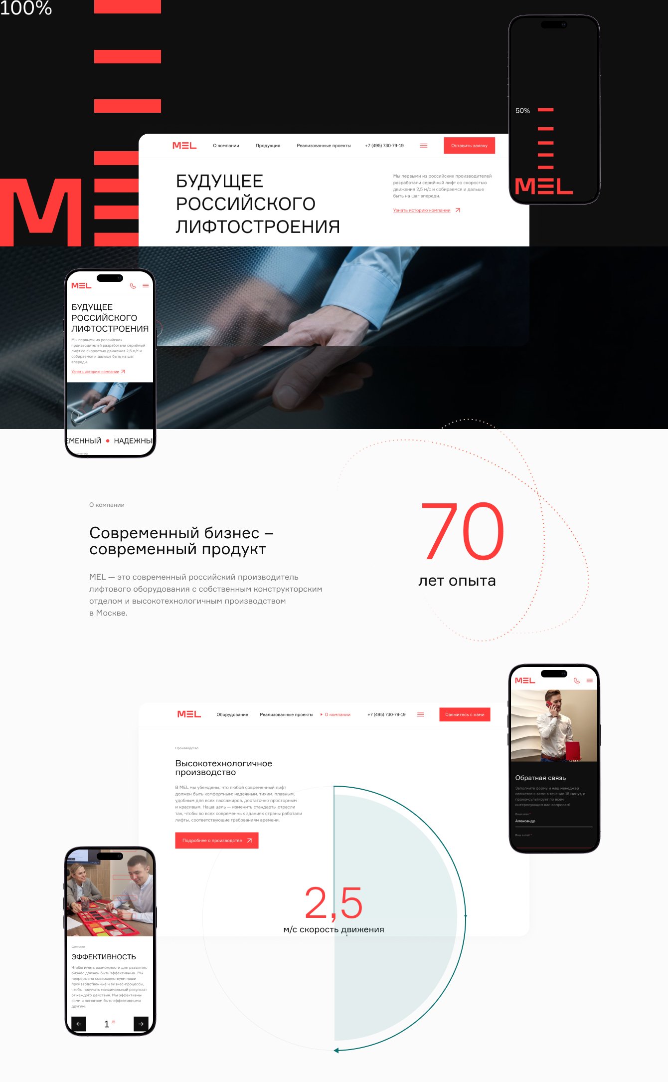 Современный и адаптивный сайт с уникальной анимацией, который в полной мере демонстрирует ключевую задачу бизнеса – производство высокотехнологичного лифтового оборудования.