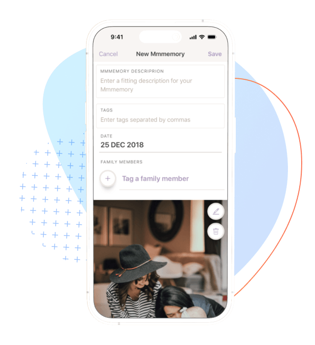Для загрузки фото, видео и других медиа материалов пользователь создает Воспоминание - основной вид поста. Внутри каждого воспоминания пользователь может установить дату, добавить фото, видео, аудиозаписи и текстовые заметки, добавить теги и отметить членов семьи. Каждое отдельное фото и видео также может иметь собственные теги и отметки.