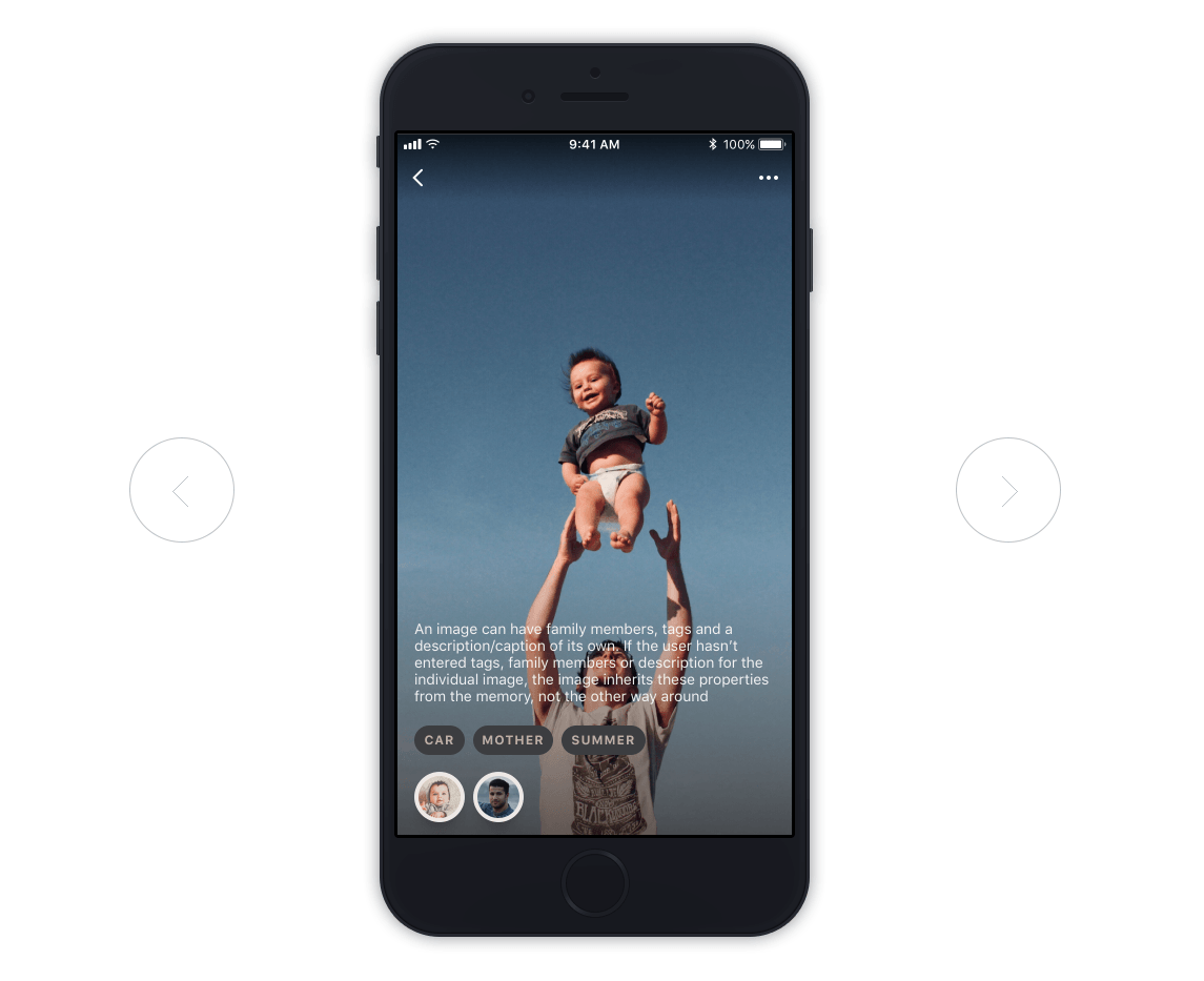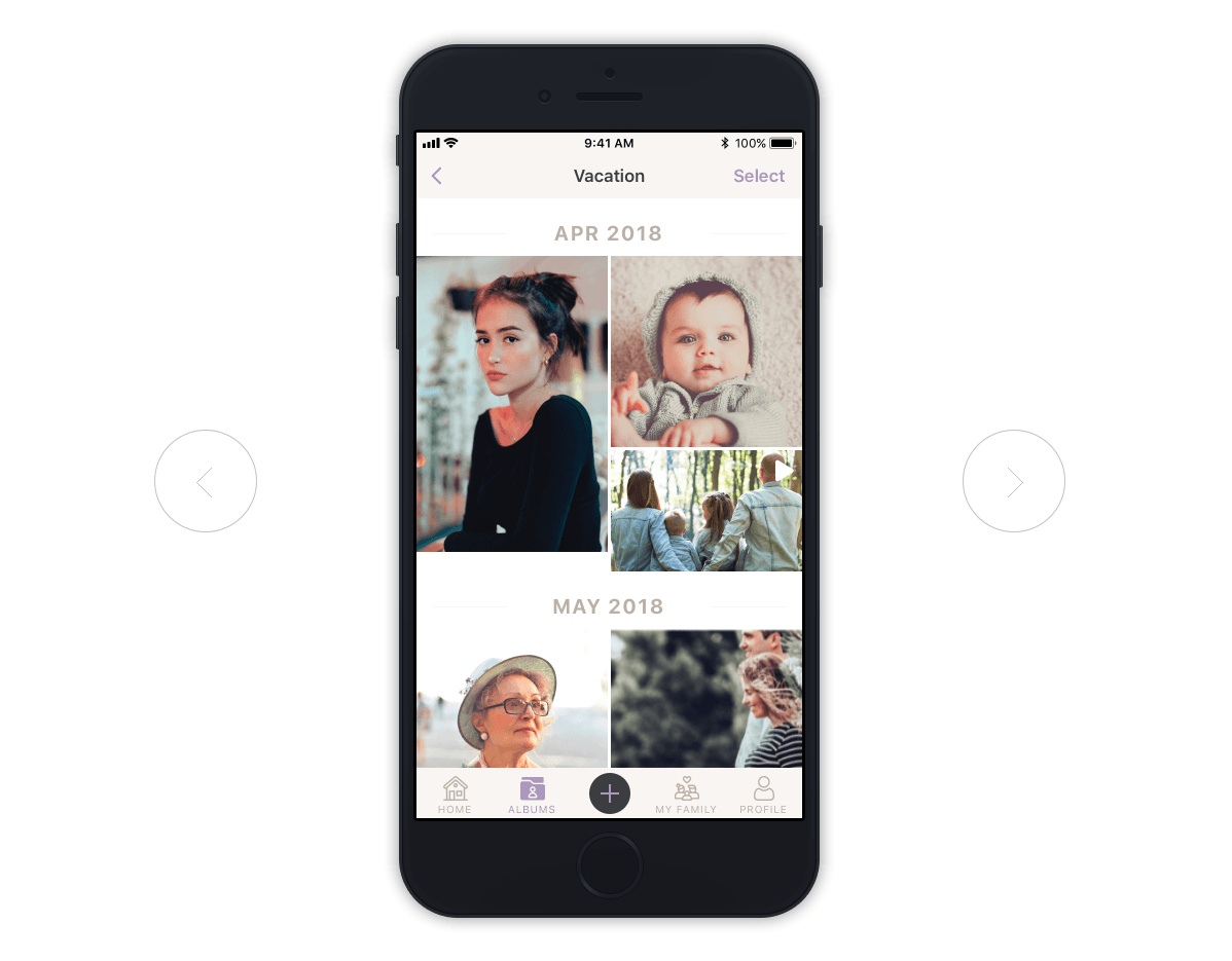 Наш клиент поставил перед нами задачу создать файлообменный сервис для людей, которые хотят делиться фотографиями и видео со своими родными и близкими. Вдохновленное iOS галереей, приложение призвано помогать пользователям легко и быстро делиться важными моментами своей жизни с помощью фото и видео в рамках одного приложения, а также создавать события, например день рождения или годовщина свадьбы, и оповещать об этом остальных пользователей.