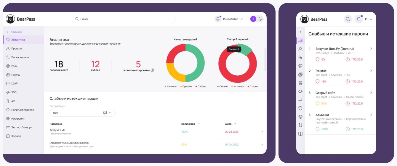 Постепенно на рынке все больше стали говорить о продукте-самозванце, все более активно отвоевыющем долю рынку о прежнего гегемона. И сегодня, со слов профессионалов рынка информационной безопасности, BearPass уверенно занимает вторую строчку среди российских парольных менеджеров. Но мы верим, что пройдет немного времени и команда продукта займет первую строчку, став самым популярным в стране средством для хранения корпоративных паролей.