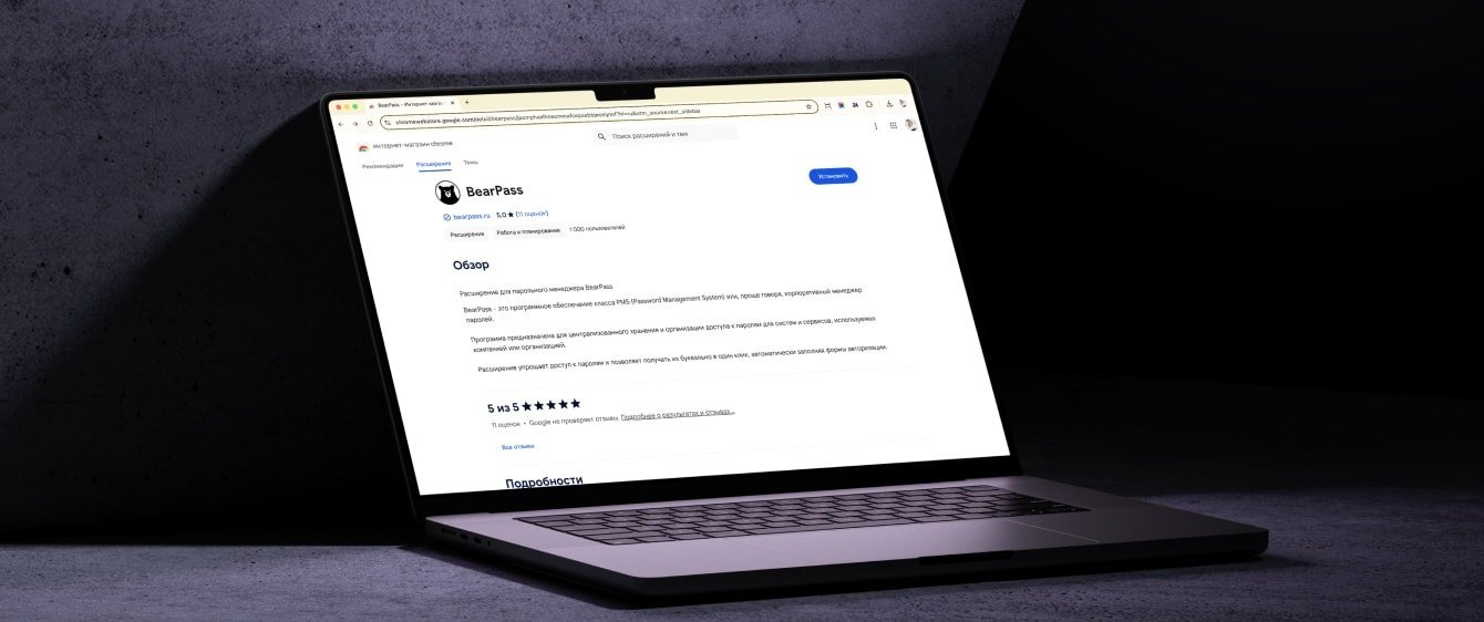 Расширение можно скачать из стандартного магазина приложение Google Chrome и оно позволяет авторизовываться на сайтах и сервисах в один клик. Человек заходит на сайт, BearPass сам подсказывает ему нужную парольную запись, пользователь делает клик и “вжух! и готово!”