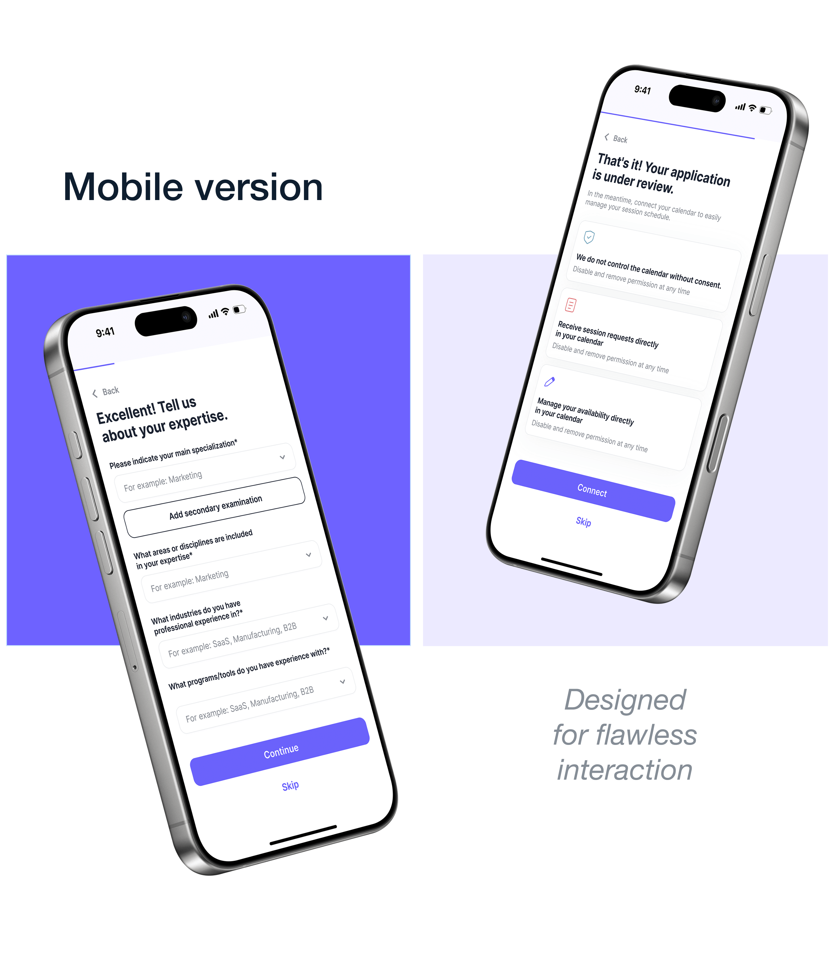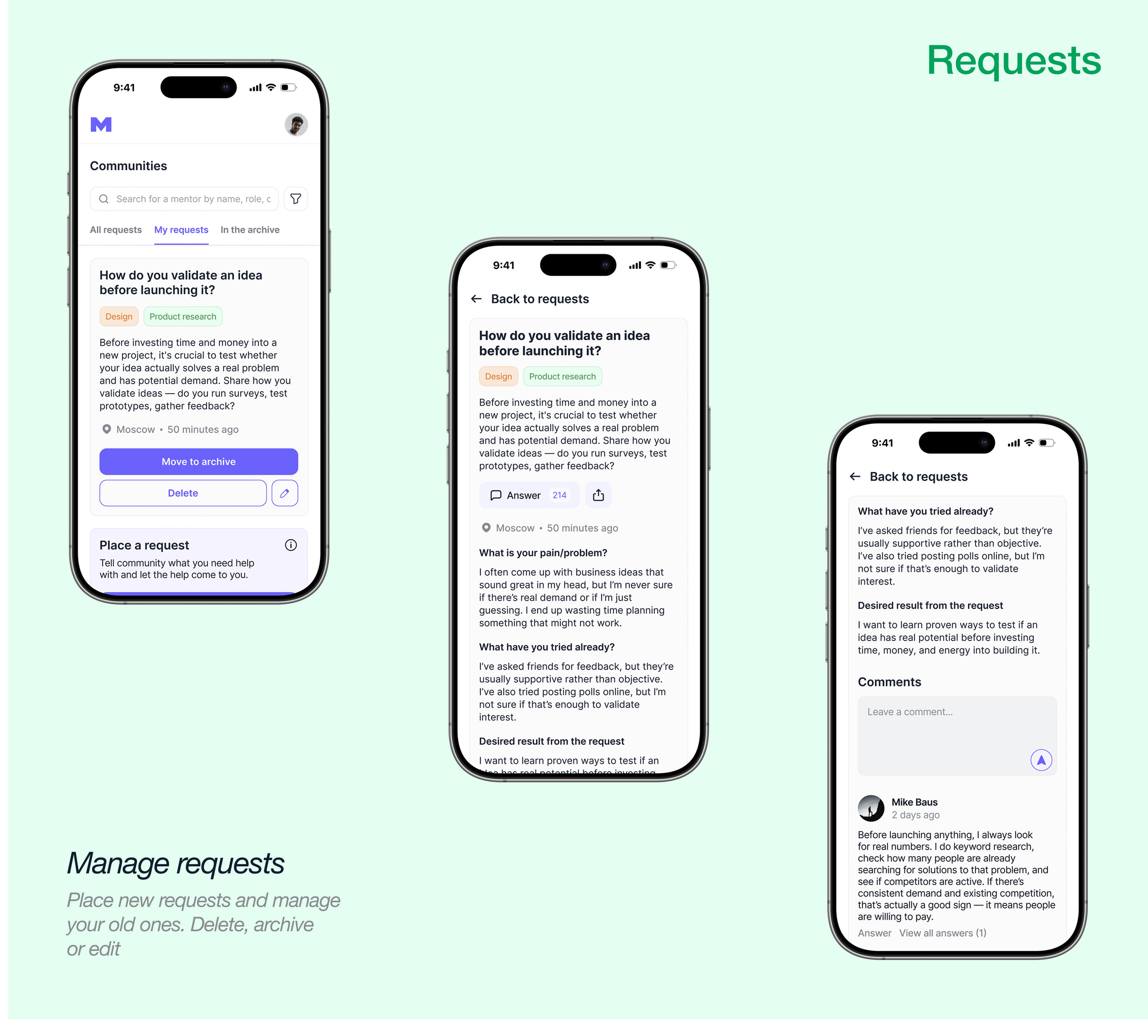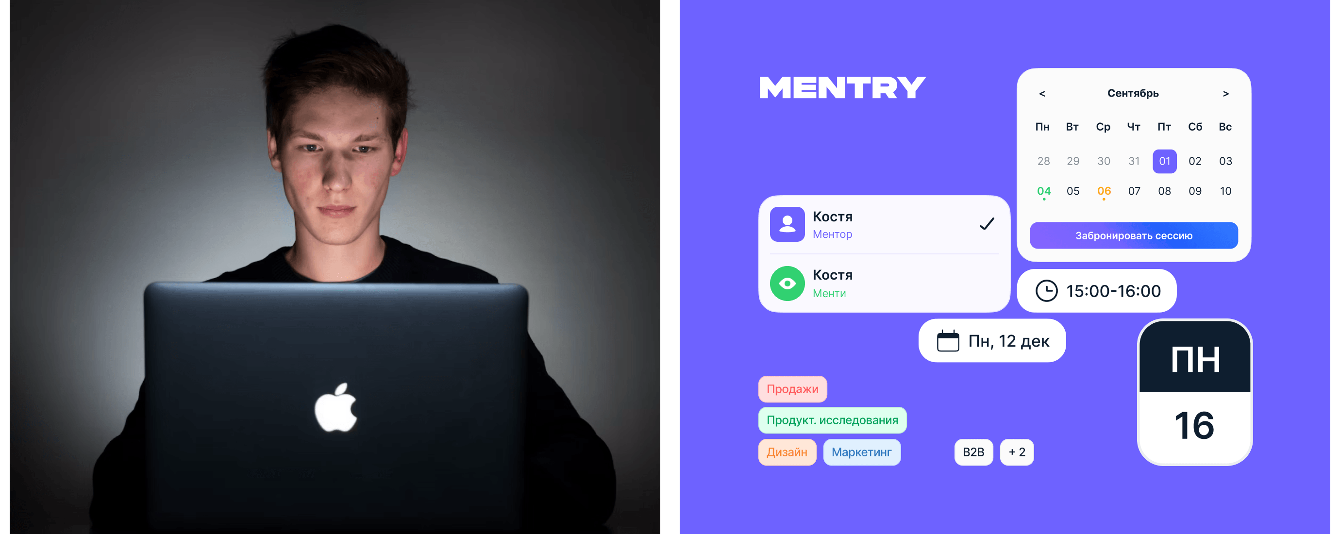 1. Стратегическая сессия и анализ: Мы провели глубинное интервью с заказчиком, проанализировали целевую аудиторию (менторы и менти) и их «боли», изучили конкурентный ландшафт.