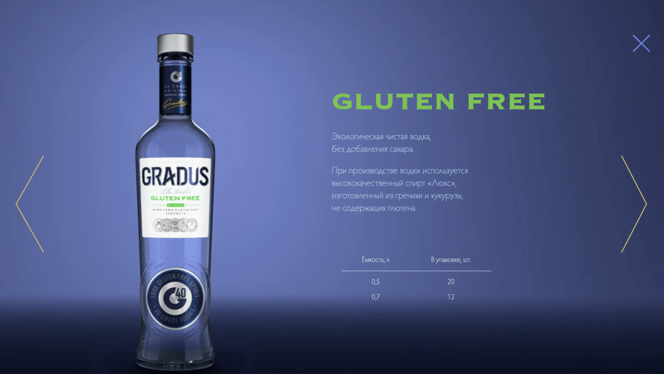 На сайте vodkagradus.ru мы совместно с lakota.pro постарались максимально отобразить главный посыл новой упаковки, ее инновационность, современность, премиальность. Для этого мы сделали упор на мультимедийные блоки, лаконичную структуру и качественный дизайн.